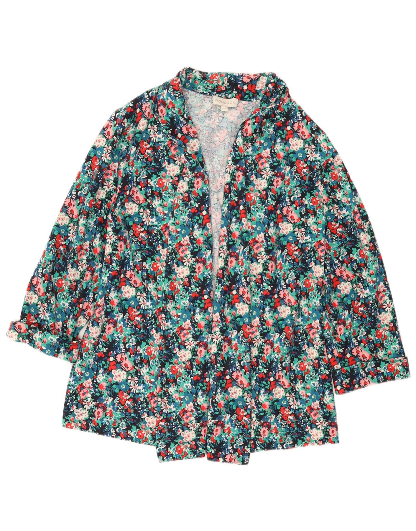 MONSOON Womens Open Blazer Jacket UK 14 Medium Multicolored Floral
