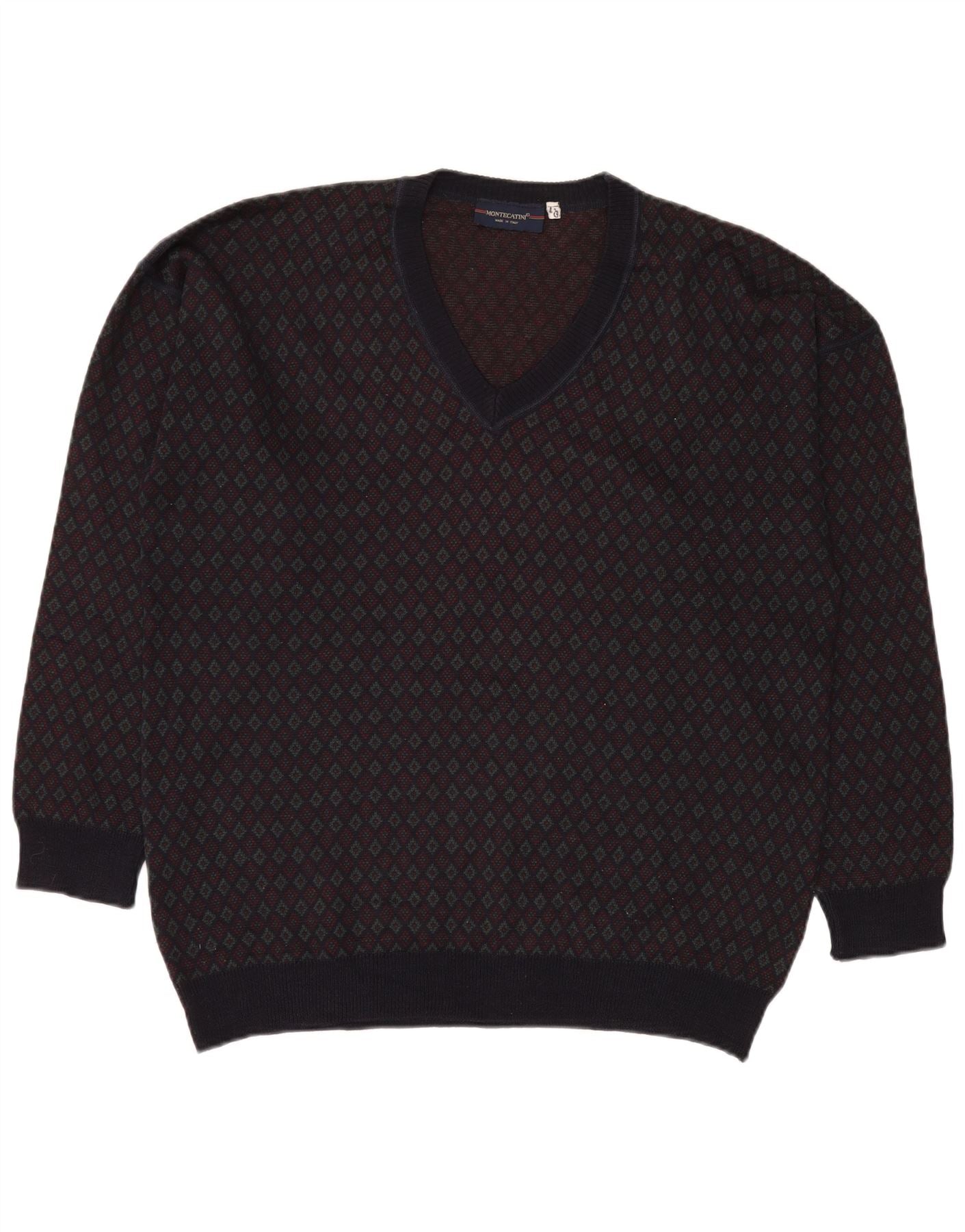 MONTECATINI Herre V-hals sweater Stor Flerfarvet Geometrisk