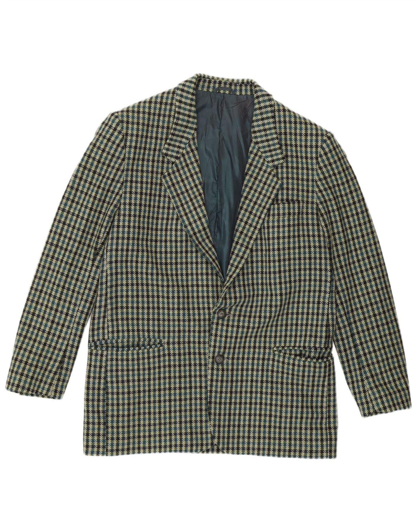 MONTEZEMOLO Herre 2-knaps blazerjakke UK 40 Stor grøn ternet uld