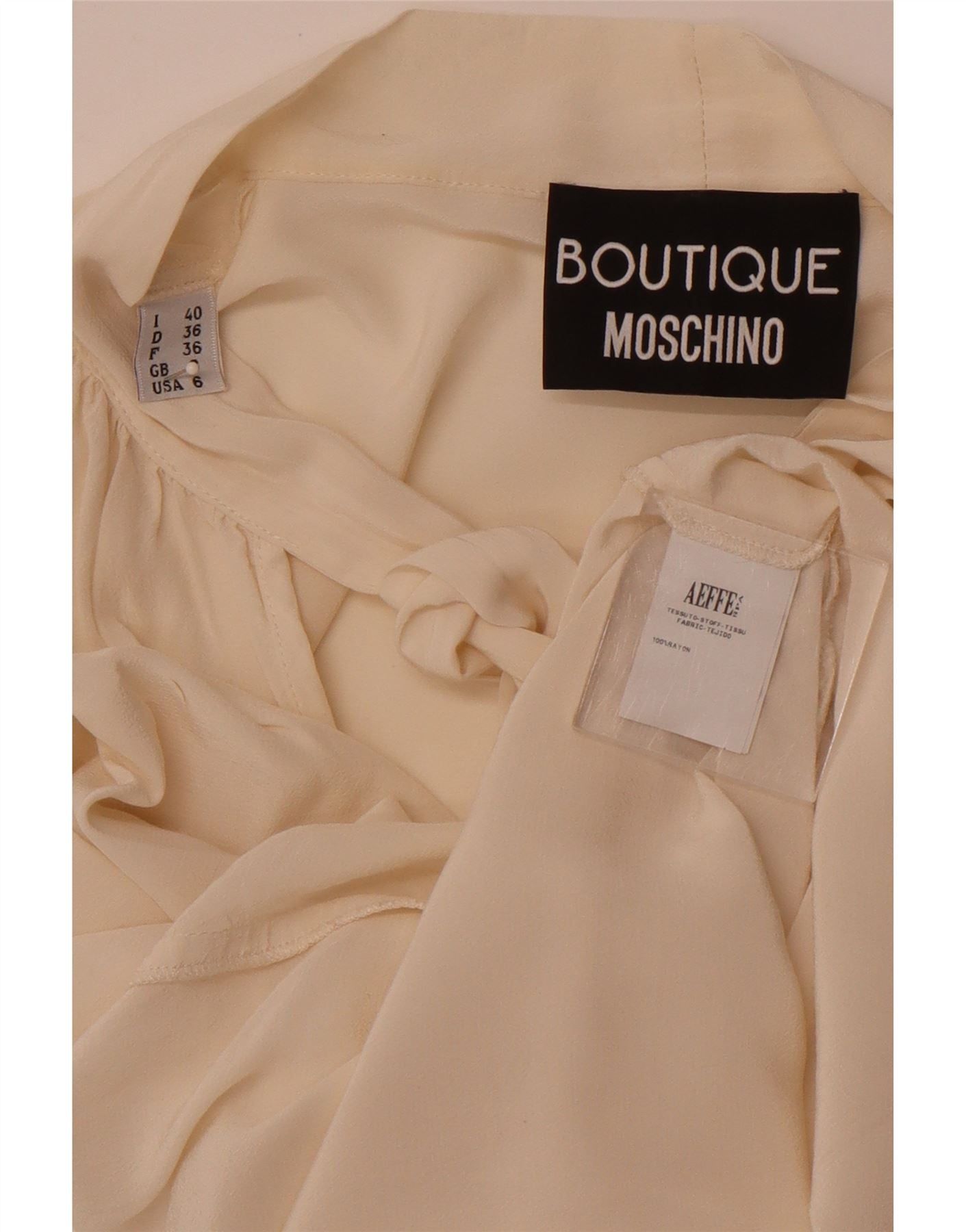 MOSCHINO Womens Front Tie Blouse Top UK 8 Small Off White Rayon