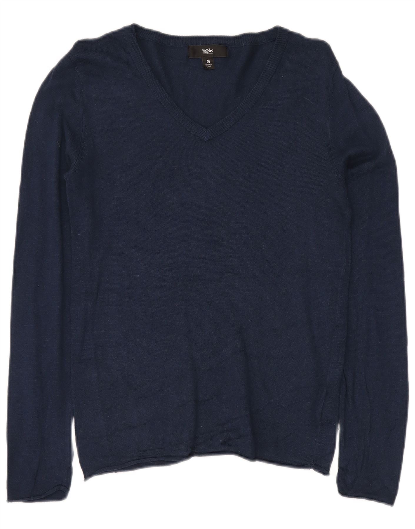 MOSSIMO Dame V-hals sweater UK 12 Medium Navy Blue Nylon