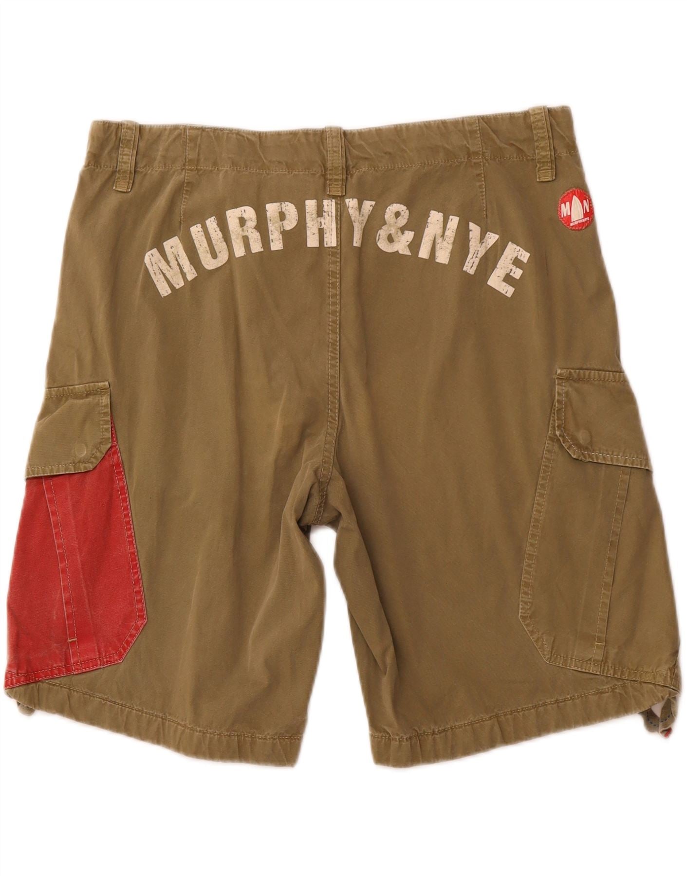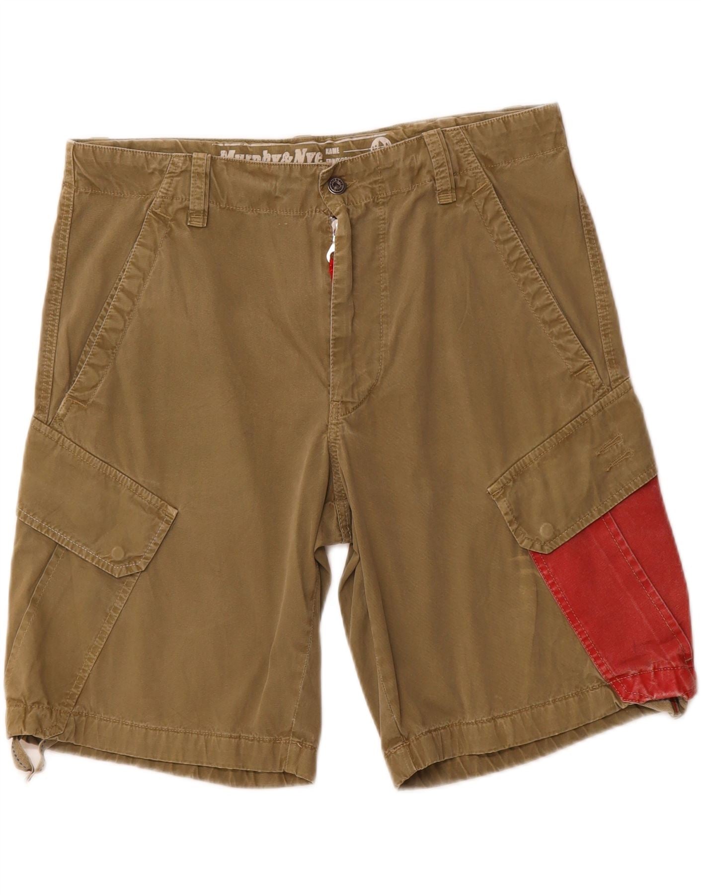 MURPHY & NYE Mens Graphic Cargo Shorts W36 Large Khaki Colourblock Cotton