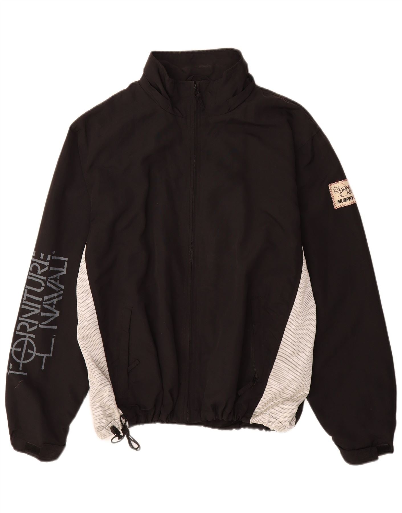 MURPHY & NYE Mens Graphic Rain Jacket UK 40 Large Black Colourblock Nylon