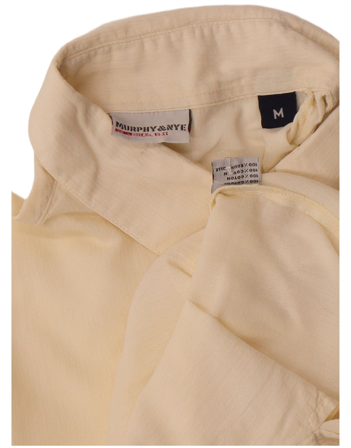 - AI beskrivelse: Denne Murphy & Nye dameskjorte er lavet af blødt råhvidt 100 procent bomuldsvævet stof. Den har en klassisk halsudskæring og en hel knap foran. De tre kvart længde ærmer er justerbare med delikate snøredetaljer, der tilbyder alsidig styling. Dens regelmæssige pasform sikrer behageligt slid og en afslappet silhuet. Denne skjorte kombinerer tidløst design med subtile, funktionelle accenter.