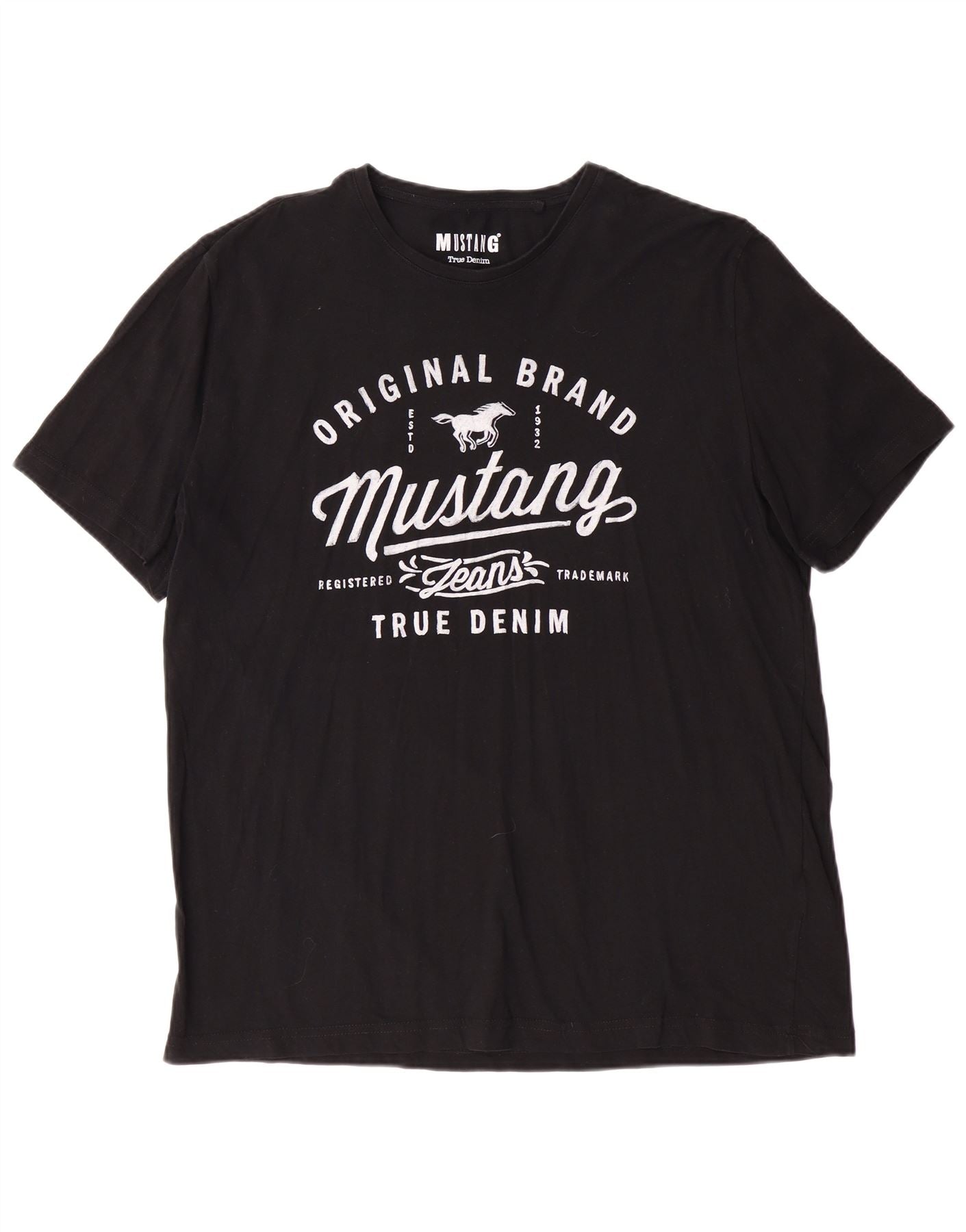 MUSTANG Herre Grafisk T-Shirt Top XL Sort Bomuld