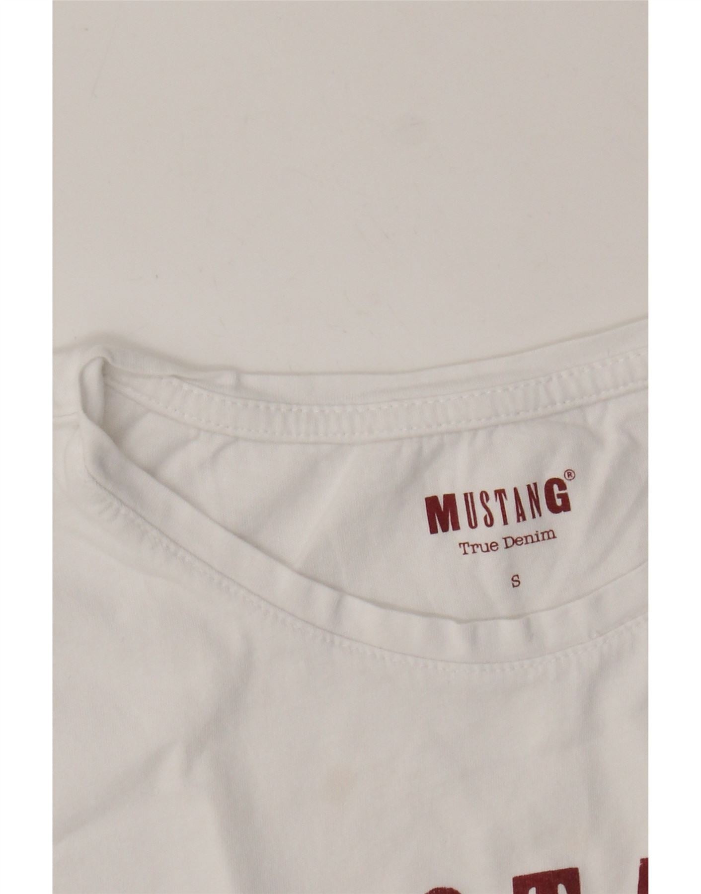 MUSTANG Dame Crop Grafisk T-Shirt Top UK 10 Small White