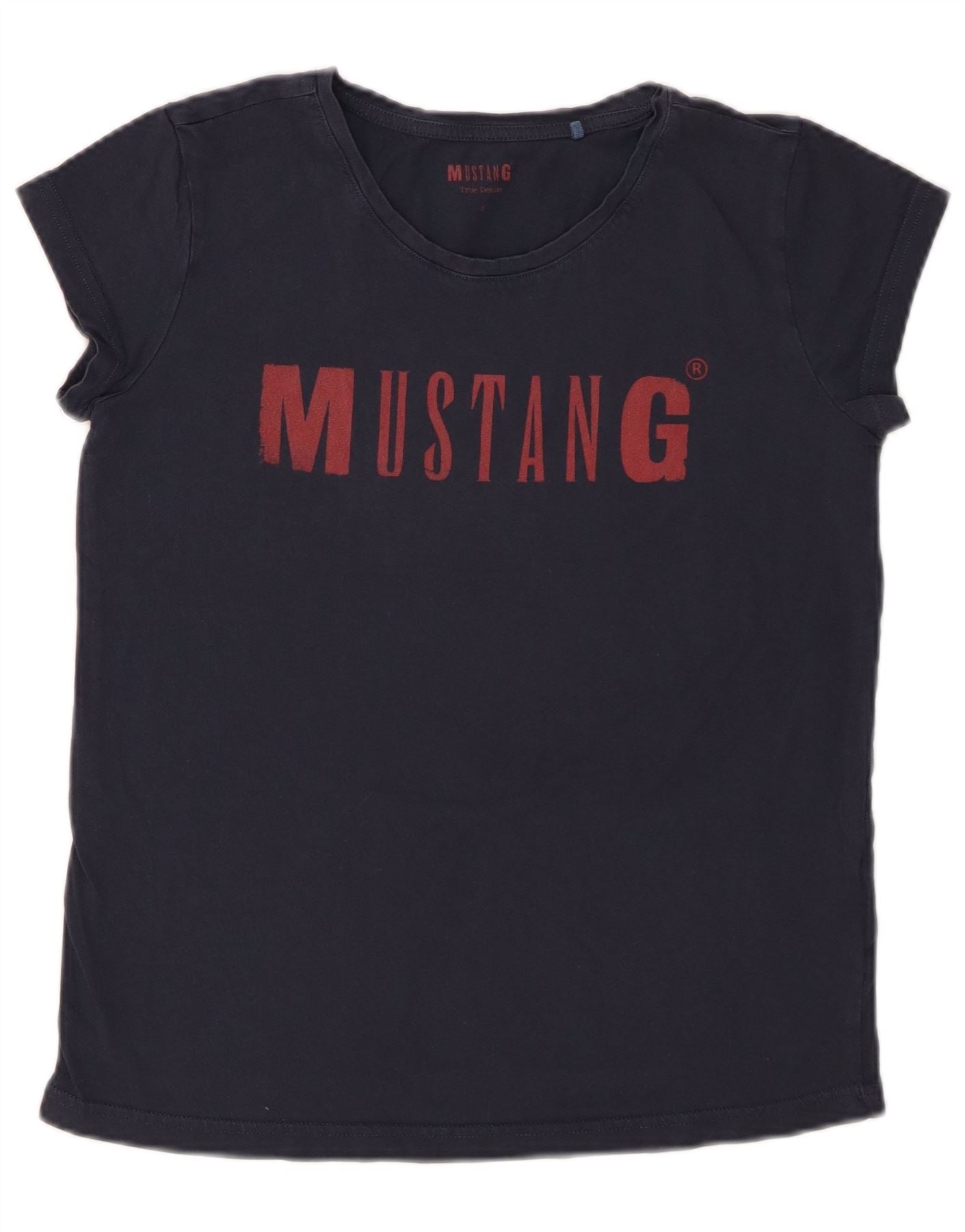 MUSTANG Grafisk T-shirt top til kvinder UK 10 Lille marineblå bomuld