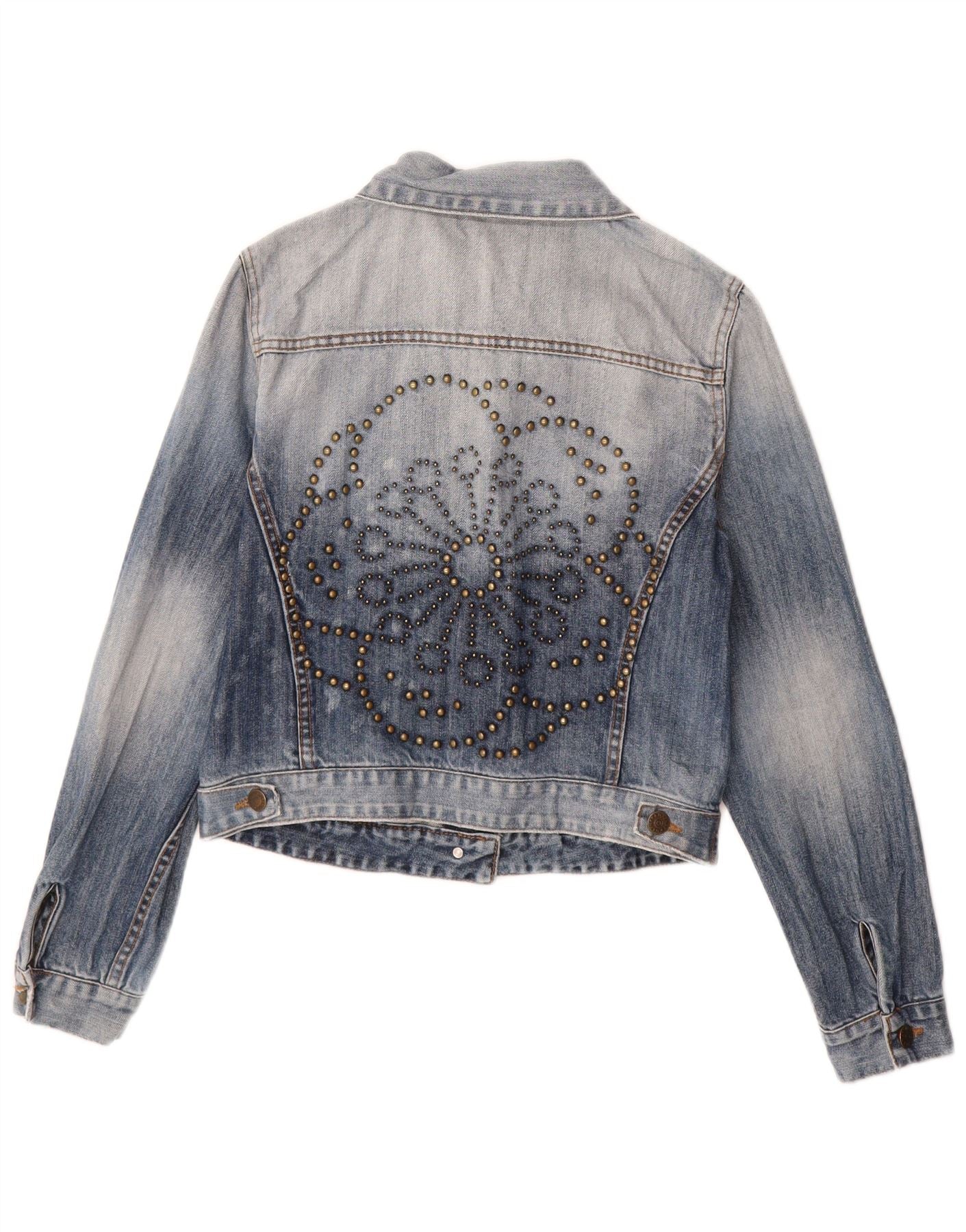 Naf Naf Dame denimjakke UK 12 Medium Blue Floral Bomuld