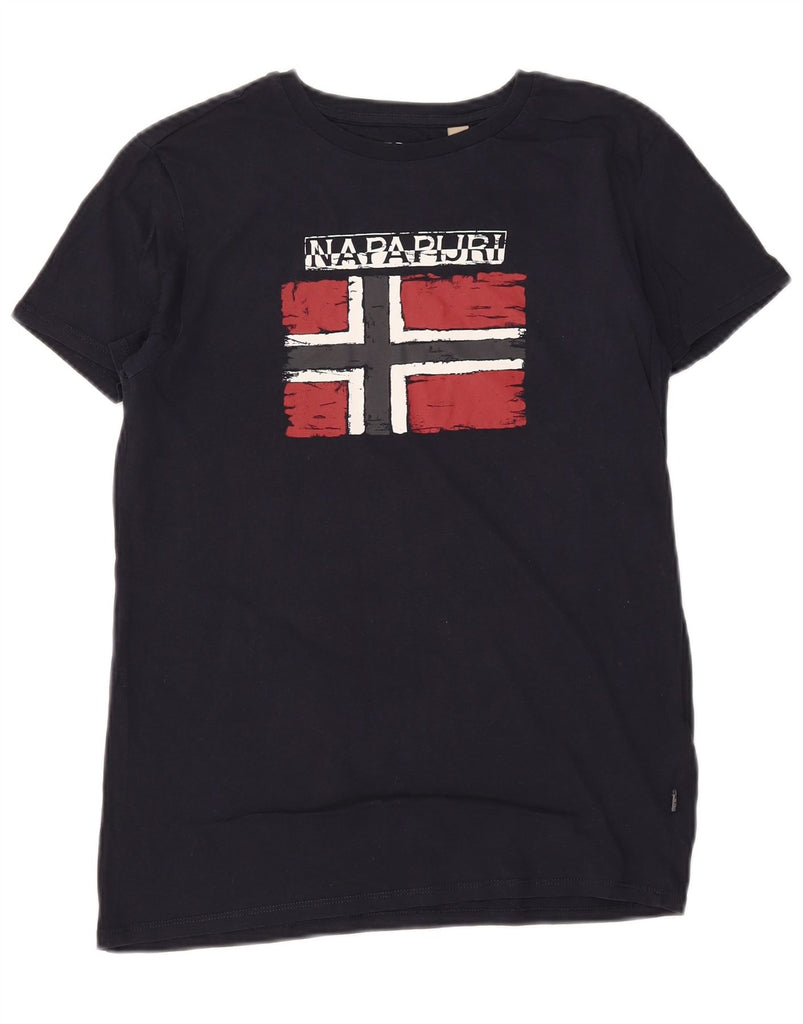 NAPAPIJRI Boys Graphic T-Shirt Top 13-14 Years Navy Blue Cotton