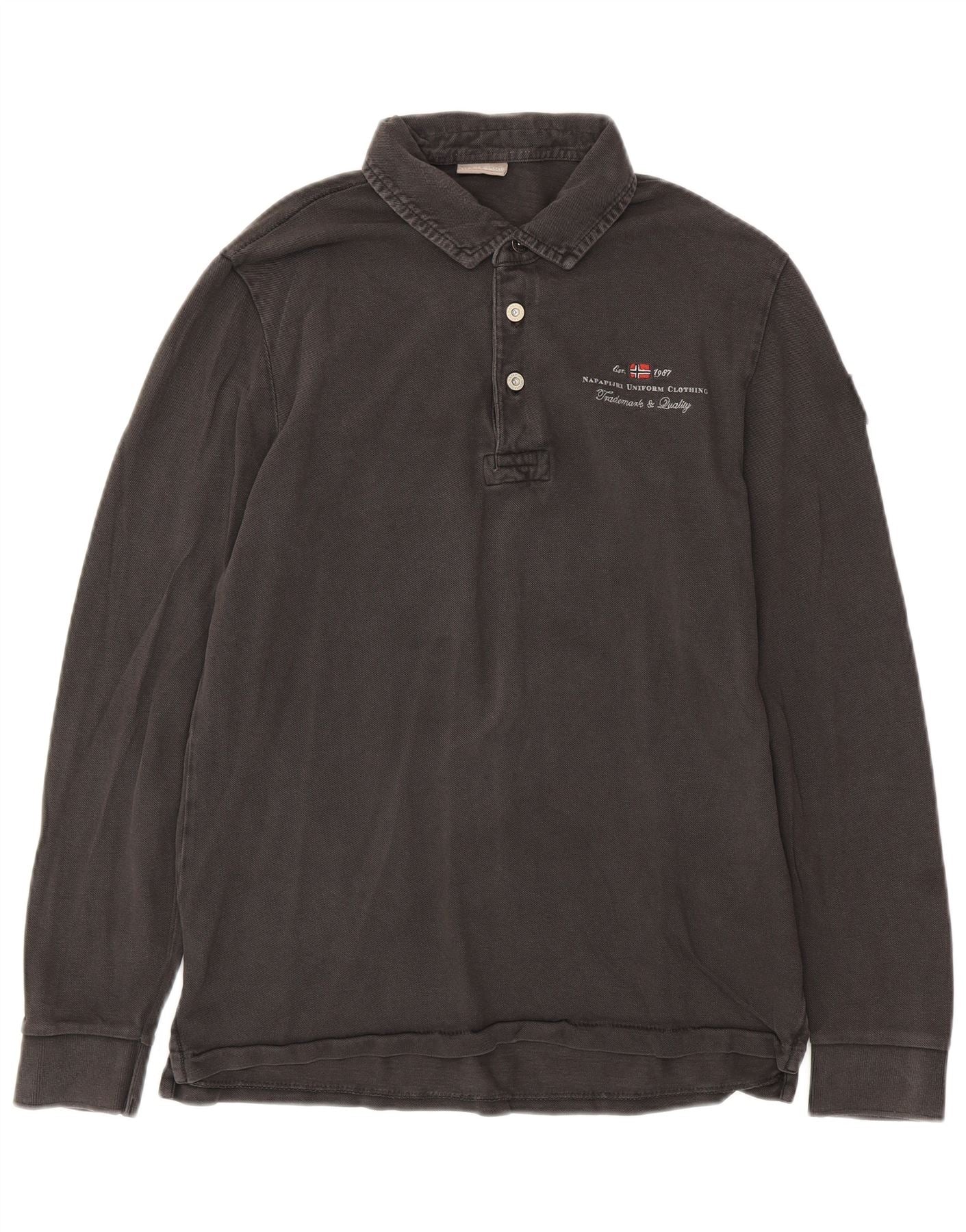 NAPAPIJRI Langærmet poloshirt til mænd mellemgrå bomuld