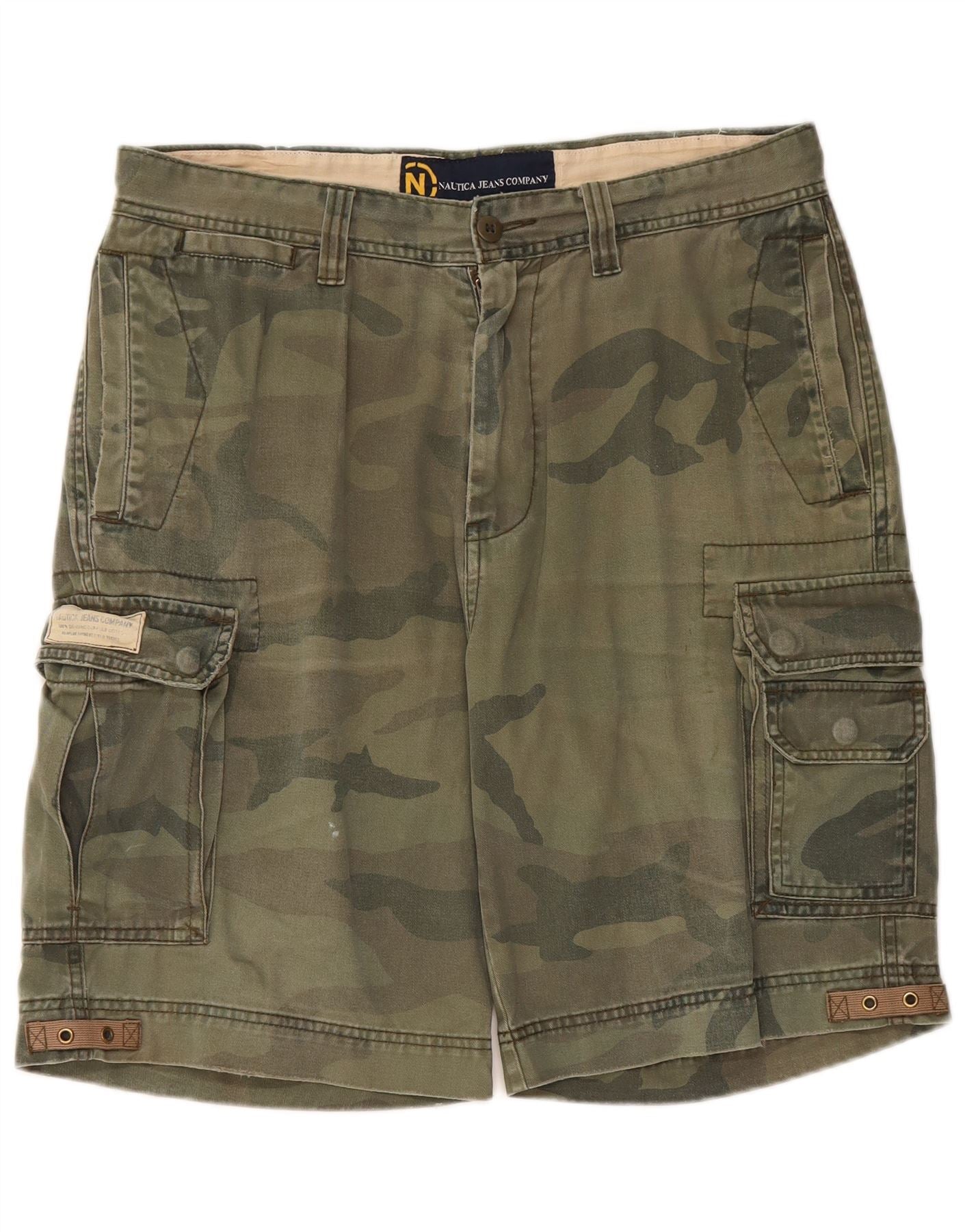 TOMMY HILFIGER Mens Cargo Shorts W31 Medium Khaki Camouflage Cotton