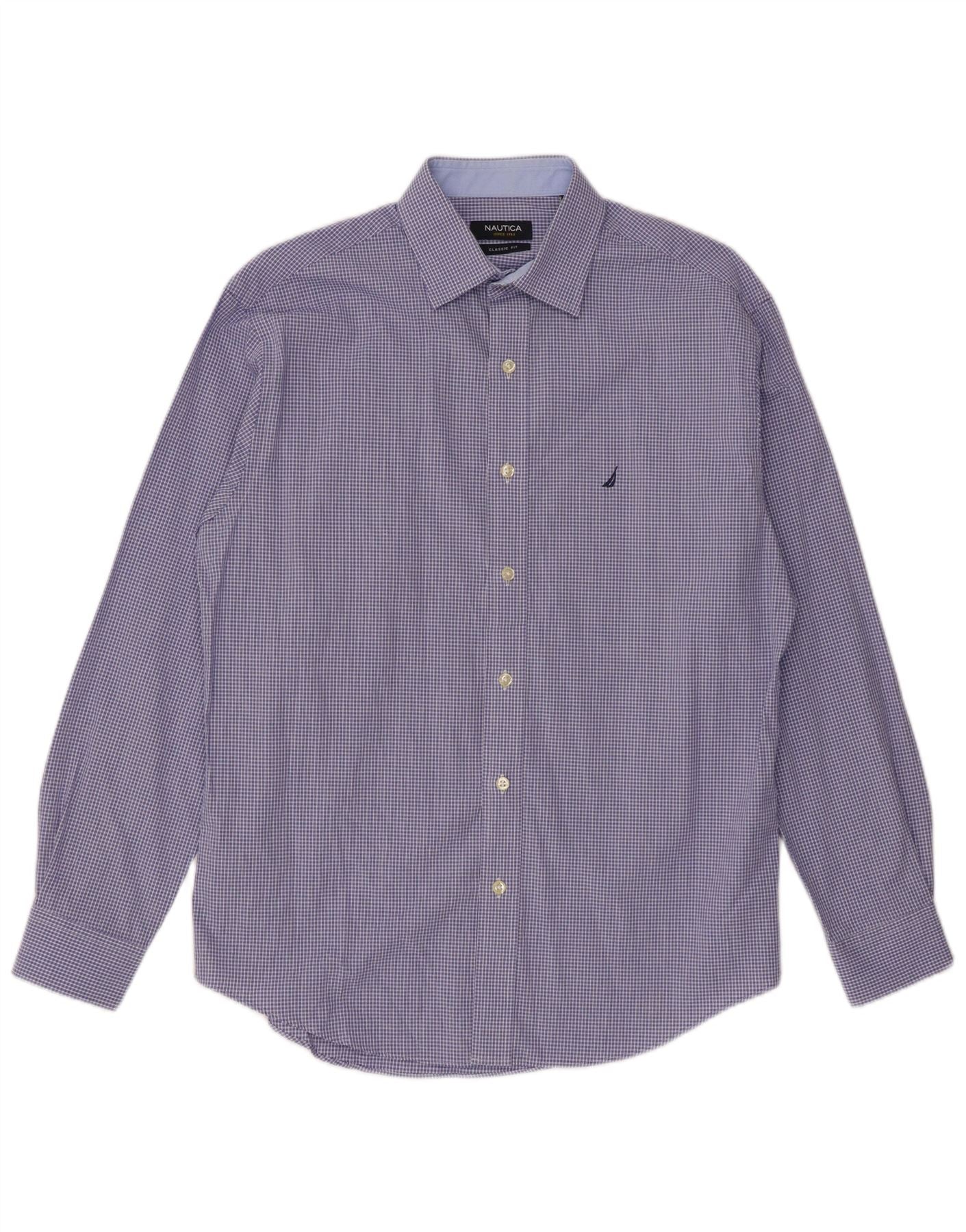 NAUTICA Herre Classic Fit Skjorte Størrelse 15 Medium Blå ternet bomuld