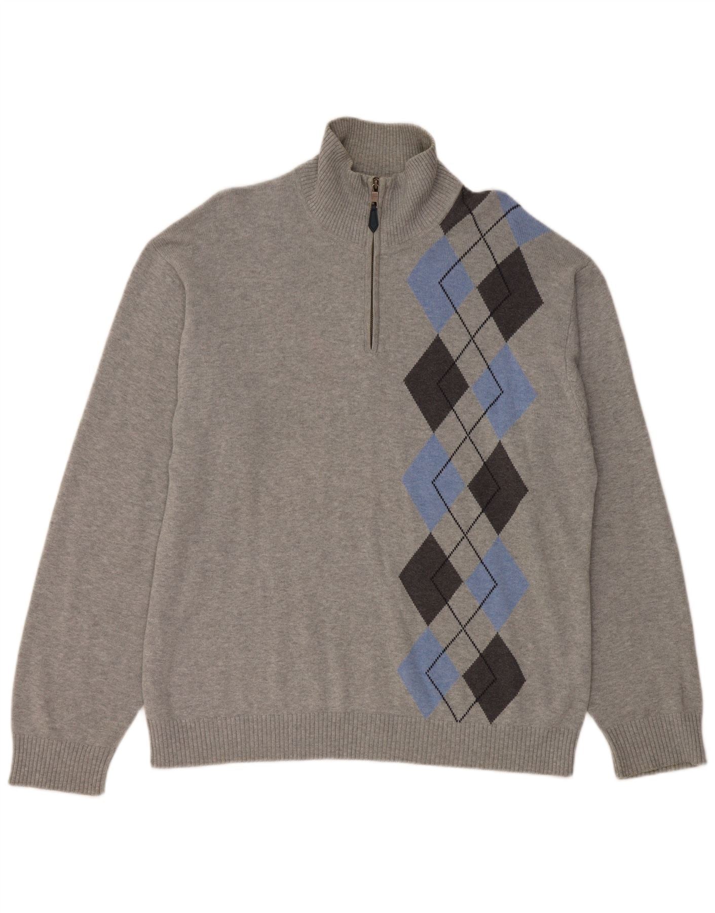 NAUTICA sweater med lynlås til mænd XL Grå Argyle/Diamond Bomuld