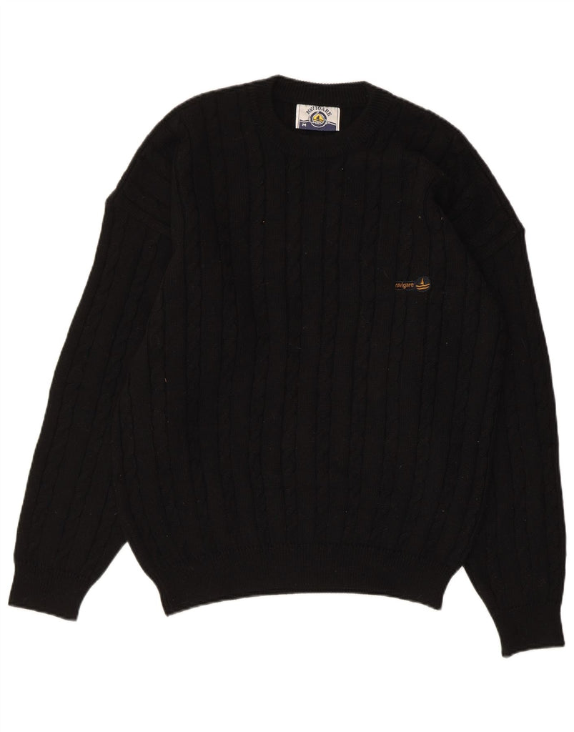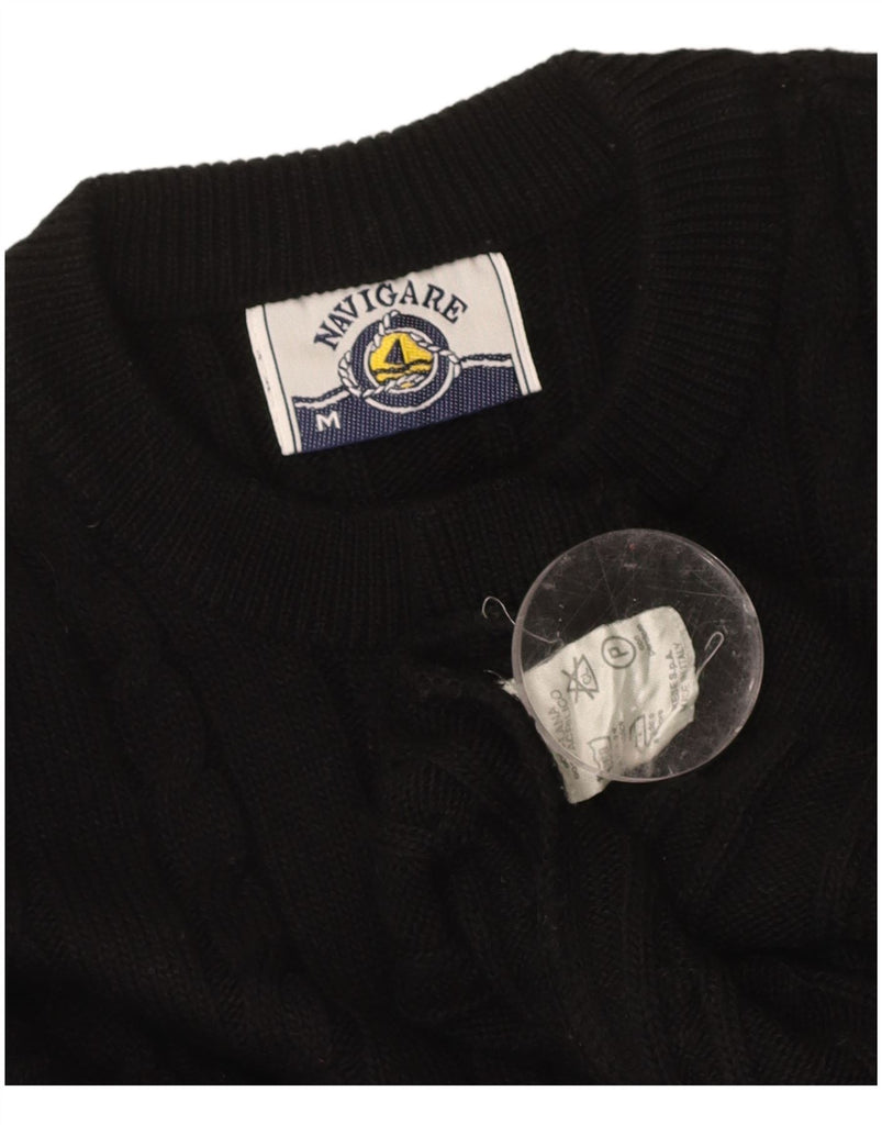 NAVIGARE Mens Crew Neck Jumper Sweater Medium Black Wool