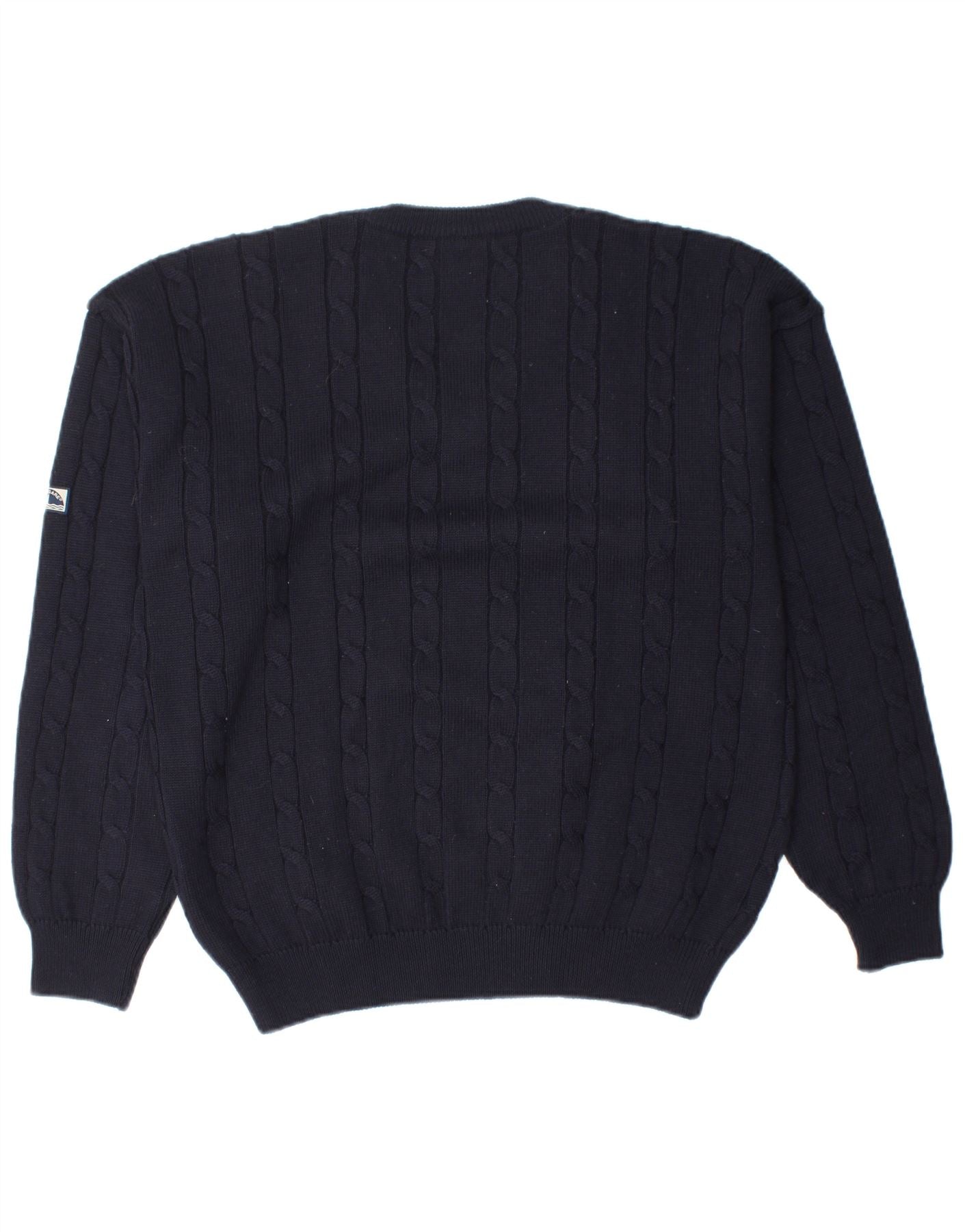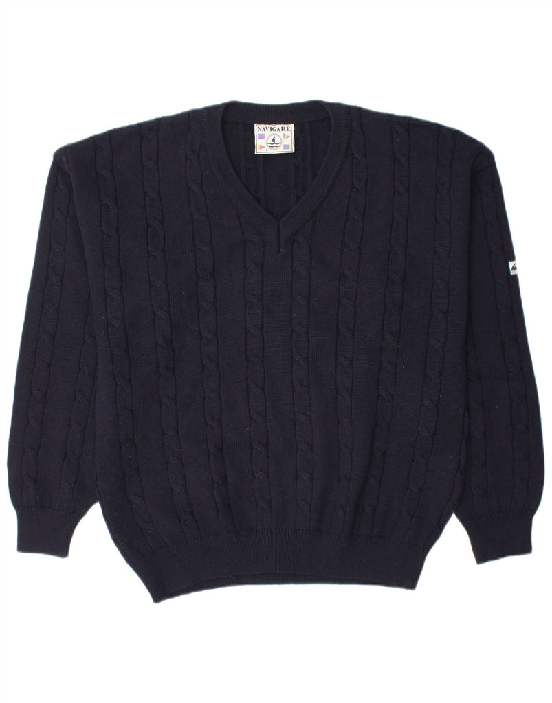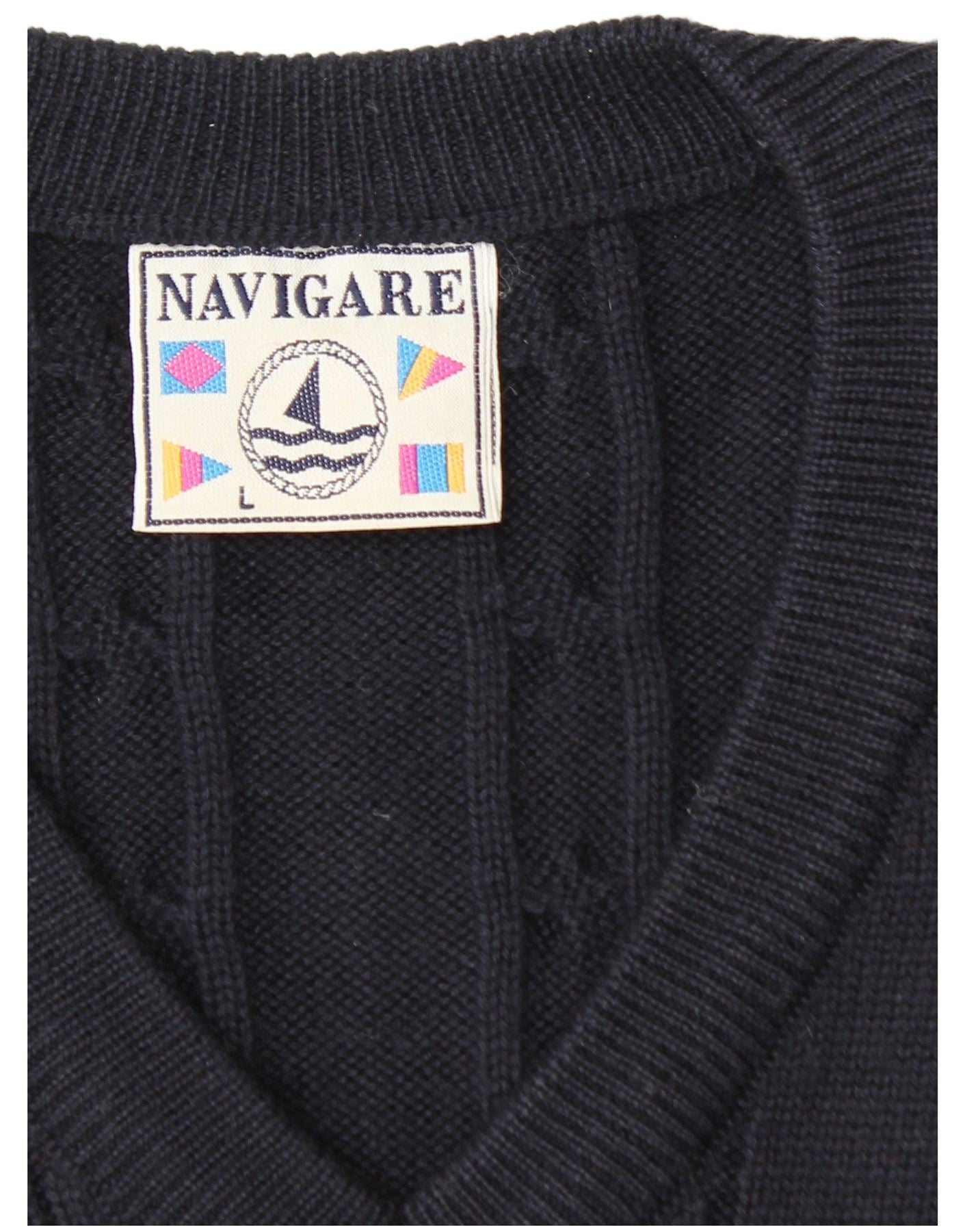 NAVIGARE Mens V-Neck Jumper Sweater Large Navy Blue Merino Wool