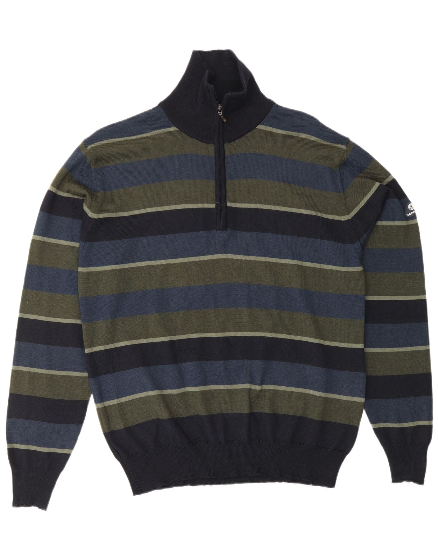 NAVIGARE Mens Zip Neck Jumper Sweater Small Multicoloured Striped