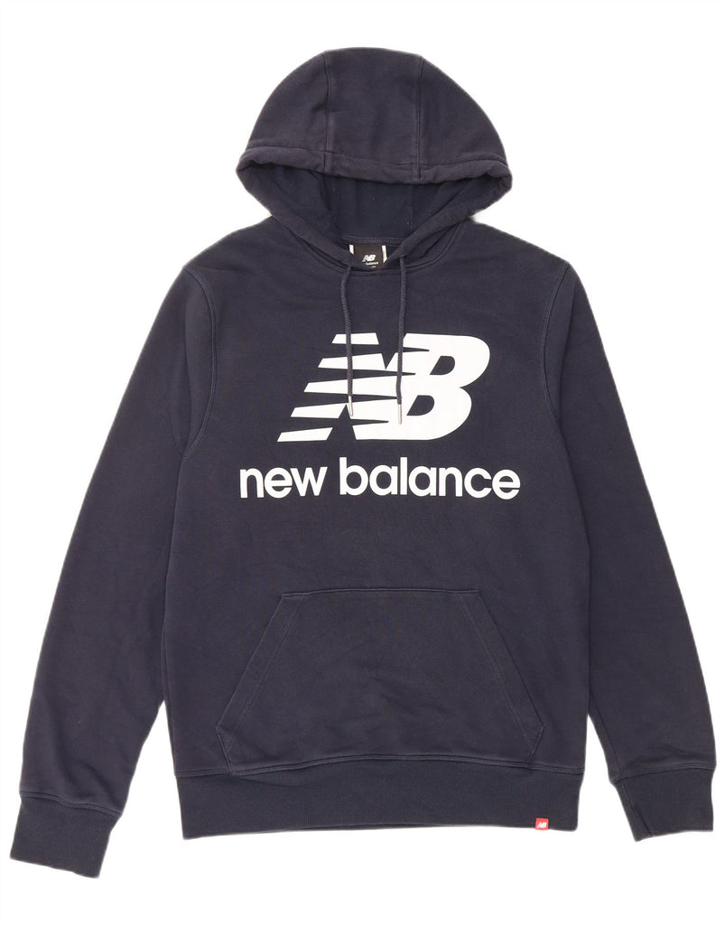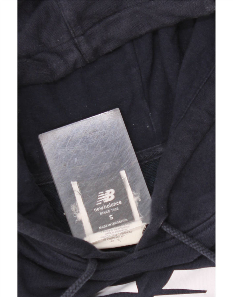 NEW BALANCE Mens Graphic Hoodie Jumper Small Navy Blue Cotton