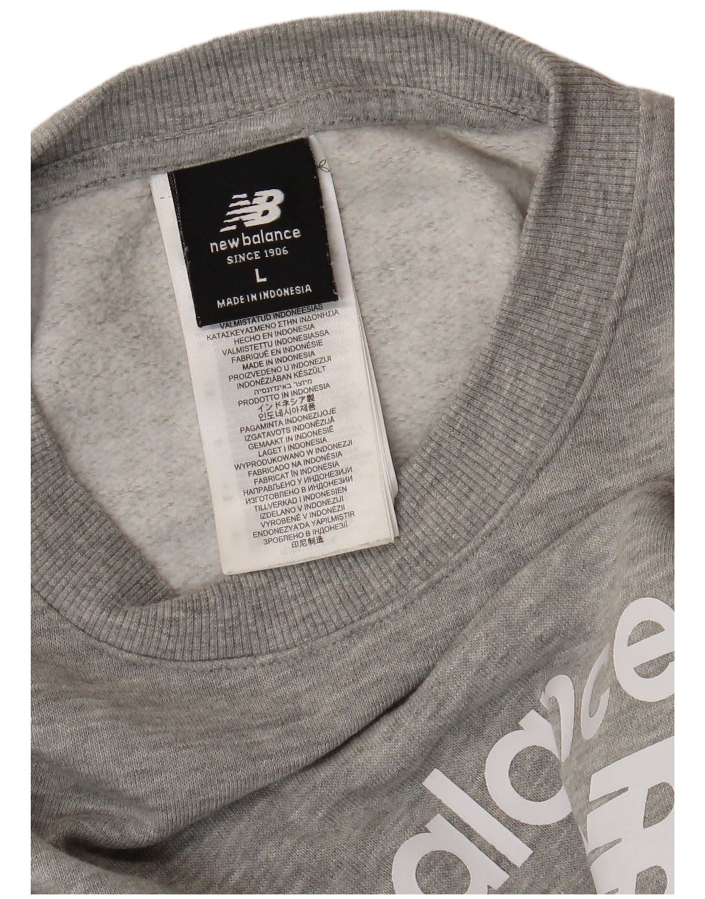 NEW BALANCE Dame Grafisk Sweatshirt Jumper UK 16 Stor Grå Bomuld