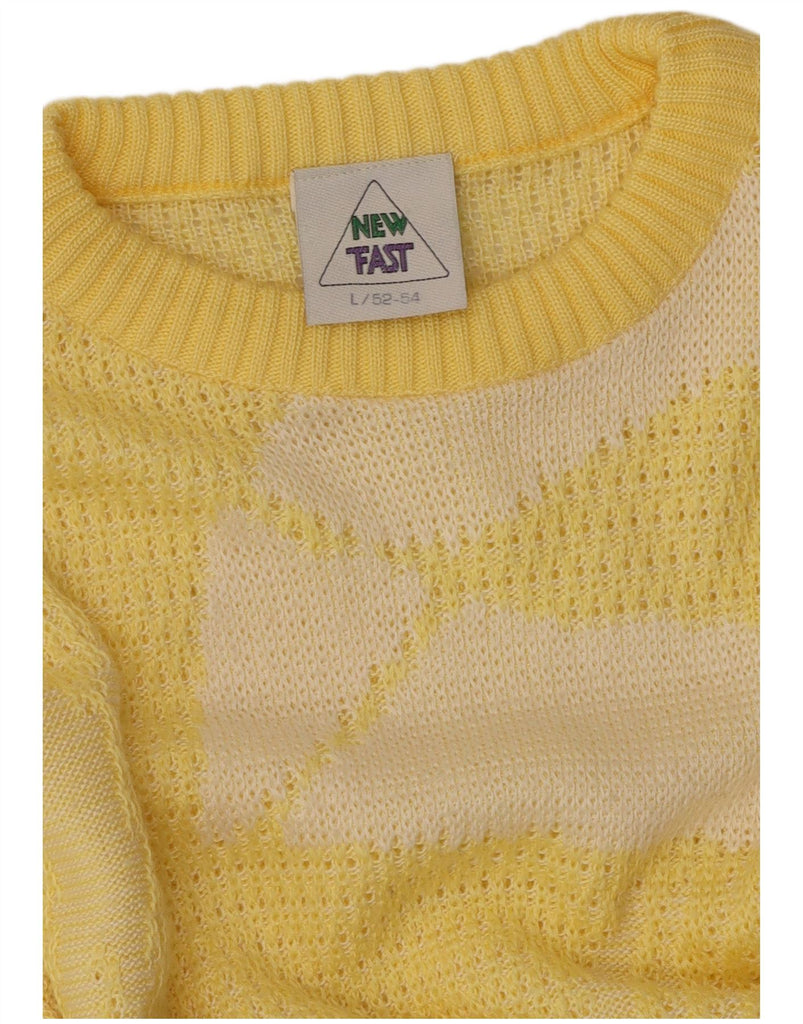 NYHURtig Dame Boat Neck Jumper Sweater UK 16 Stor Gul Geometrisk