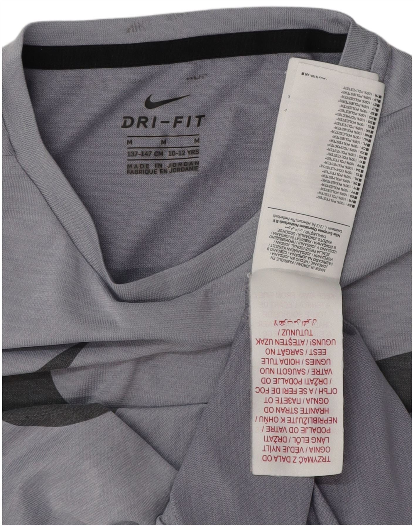 NIKE Boys Dri Fit Graphic T-Shirt Top 10-11 Years Medium Grey Polyester