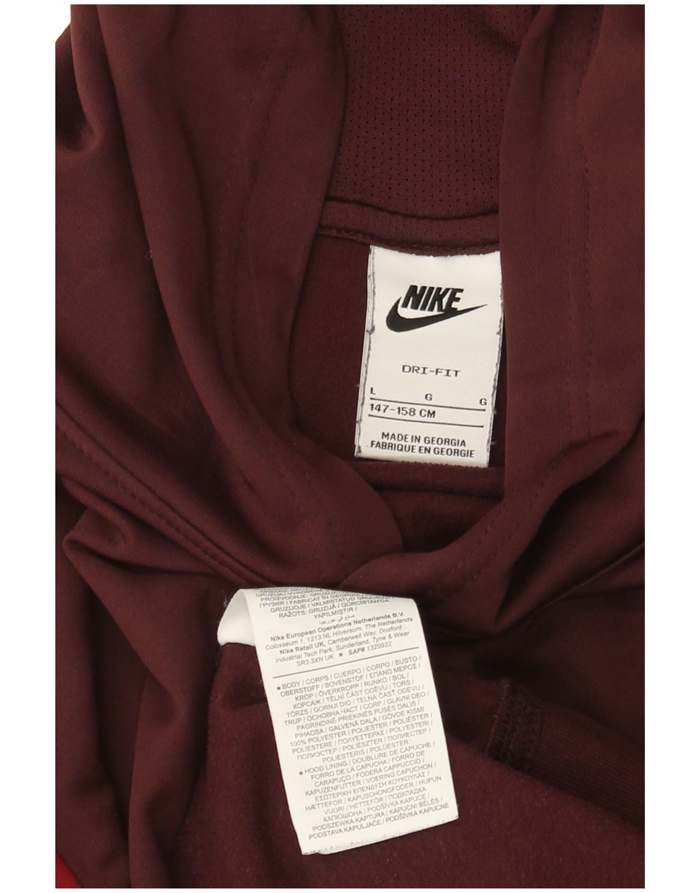 NIKE Grafisk hættetrøje til drenge 12-13 år Large Burgundy Colourblock