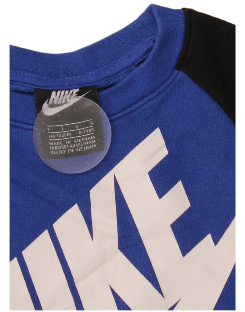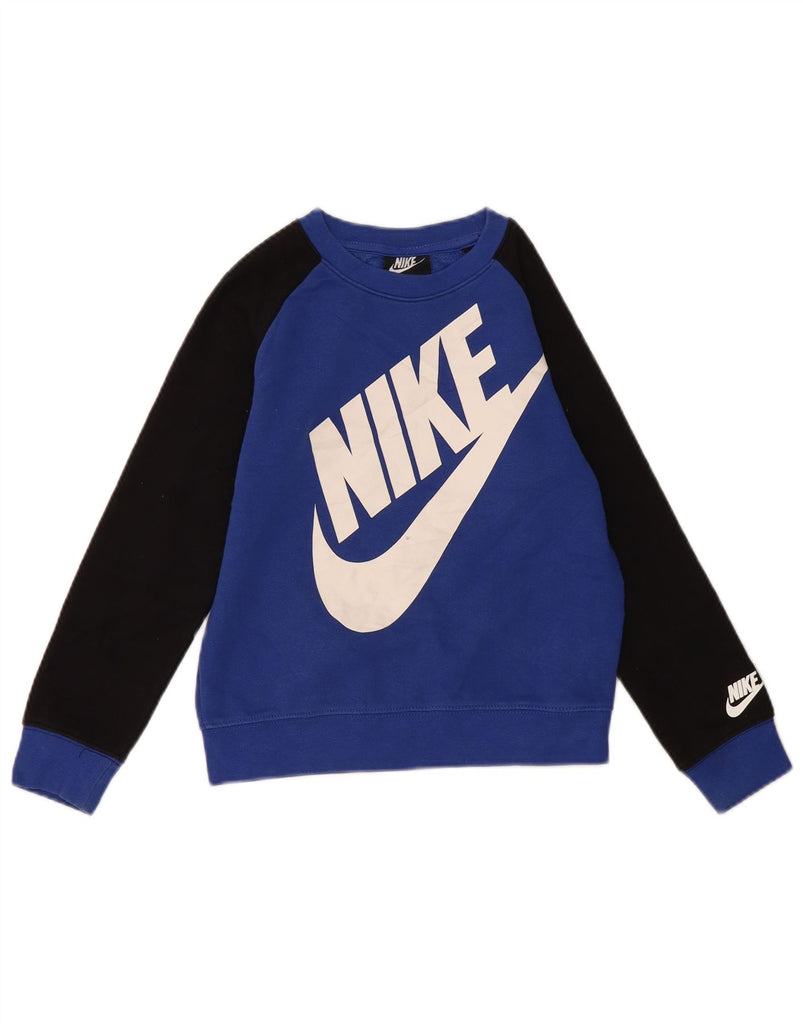 NIKE Boys Graphic Sweatshirt Jumper 6-7 Years Large Blue Colourblock