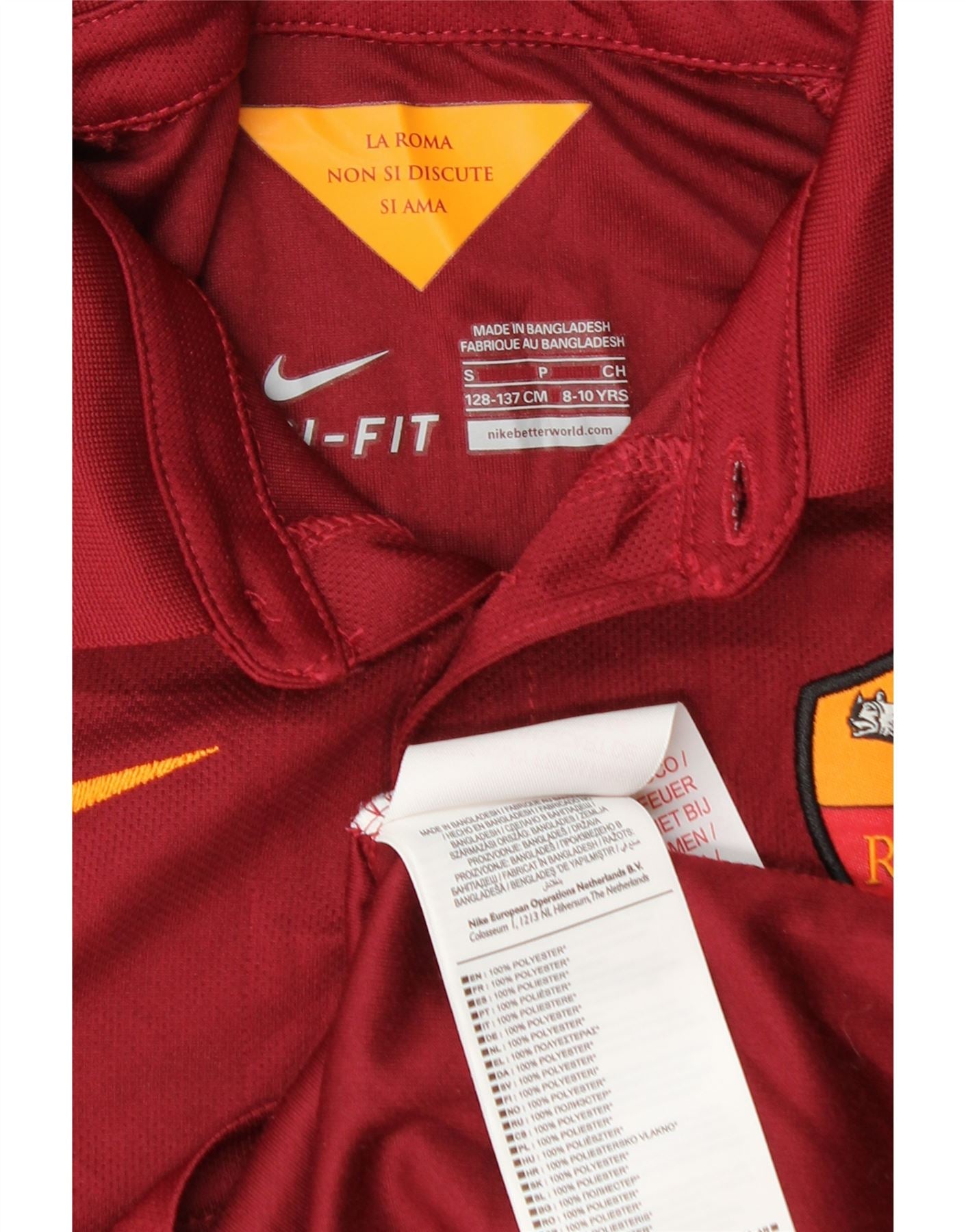 NIKE Boys Roma Polo Shirt 8-9 Years Small Maroon Colourblock Polyester