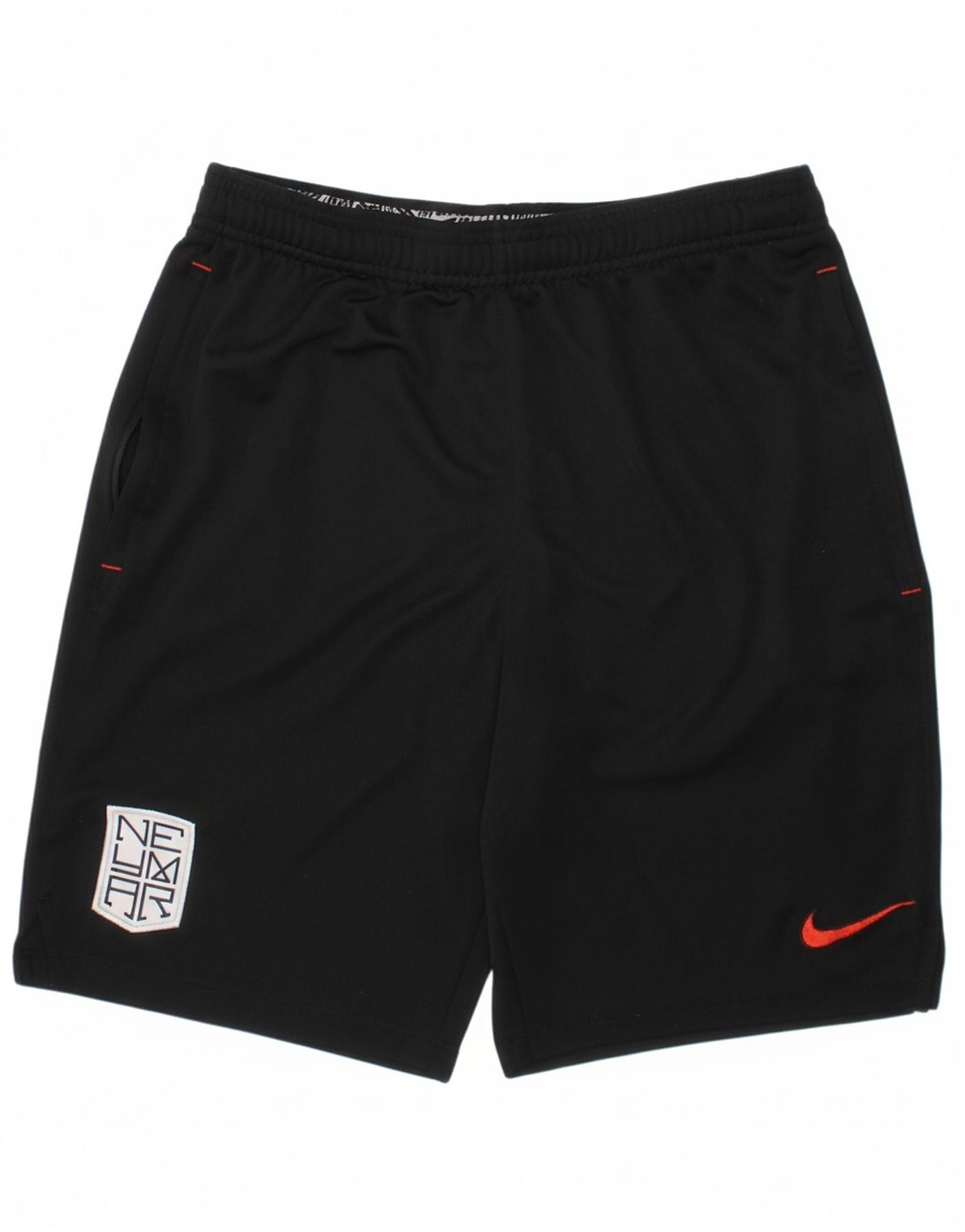- AI Description: These Nike boys shorts are crafted from breathable black polyester knit fabric. They feature an elasticated pull-on waist, ensuring a secure and comfortable fit. The athletic regular fit allows for unrestricted movement during play. Practical side pockets are included. A distinctive graphic and logo accent proudly represent the Neymar Jr collection. These shorts are ideal for football and active wear, combining performance with signature style.