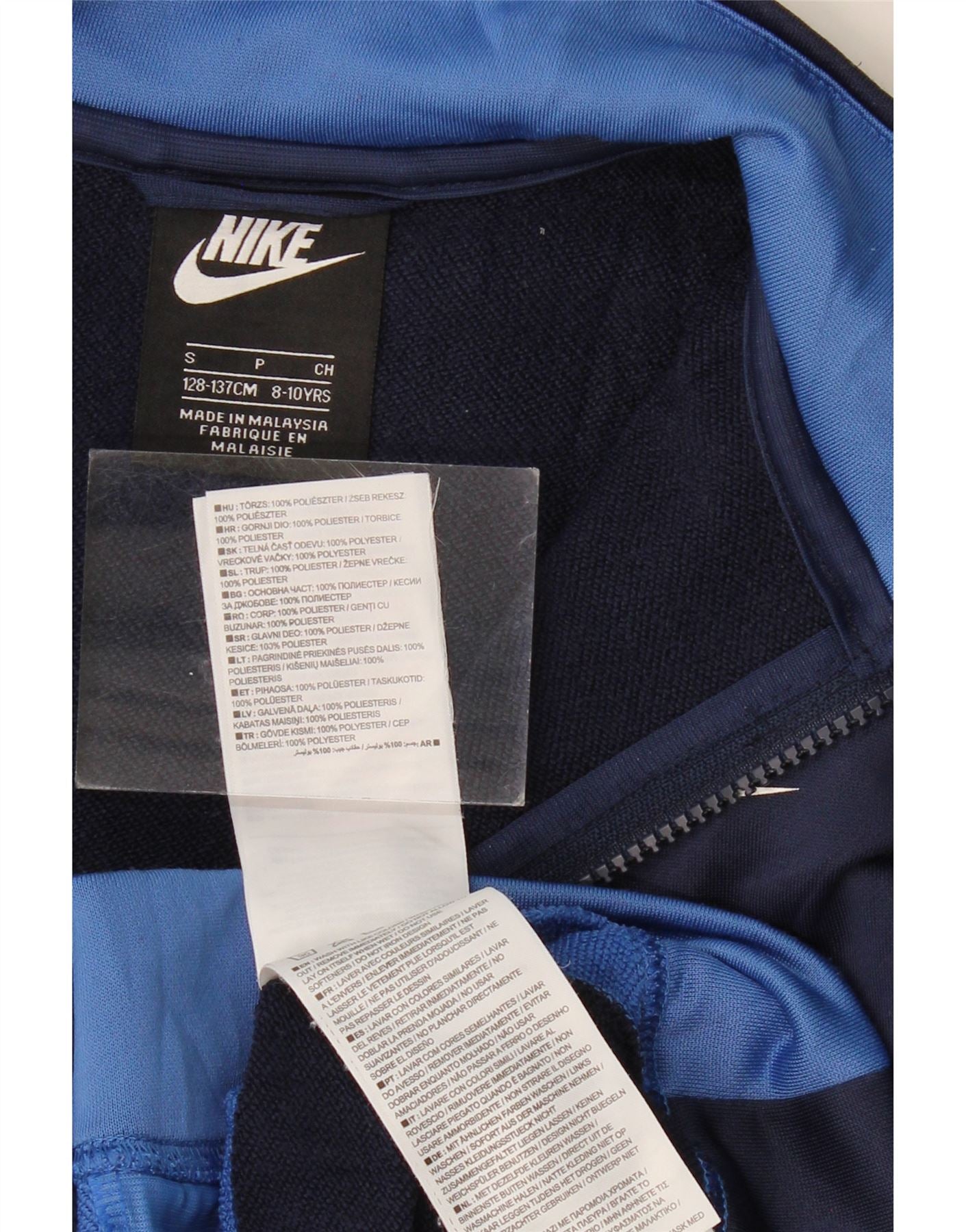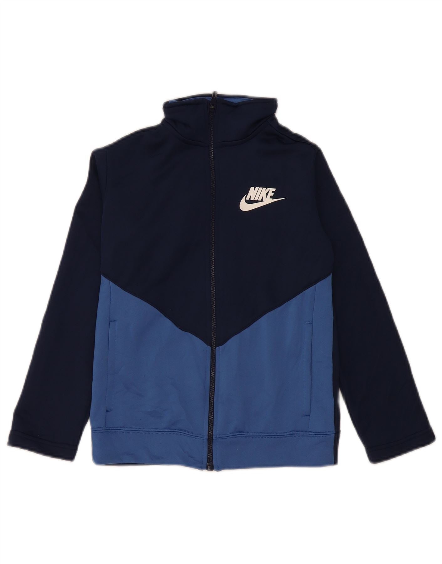 NIKE Boys Tracksuit Top Jacket 8-9 Years Small Navy Blue Colourblock