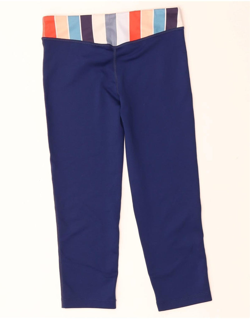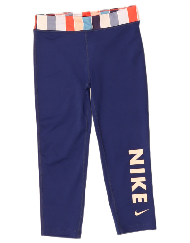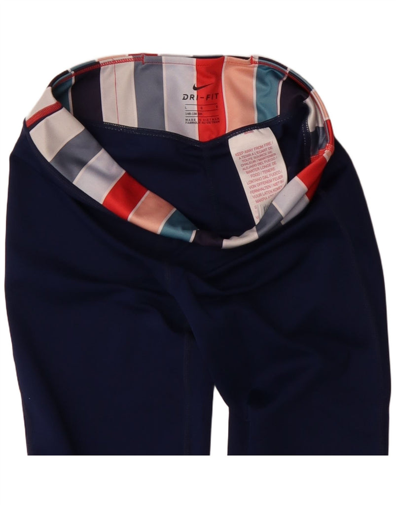 NIKE Girls Dri Fit Leggings 12-13 Years Large Navy Blue Colourblock