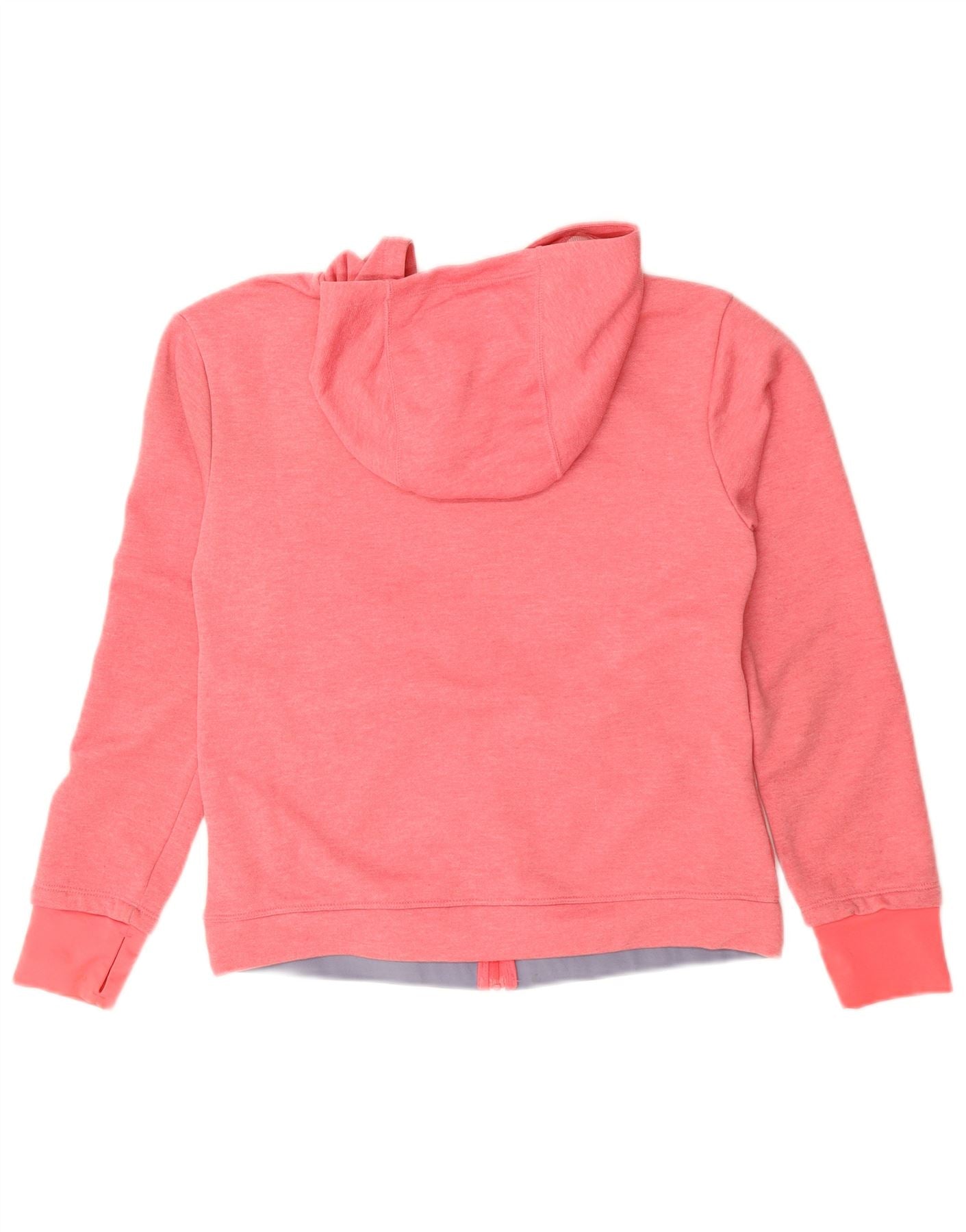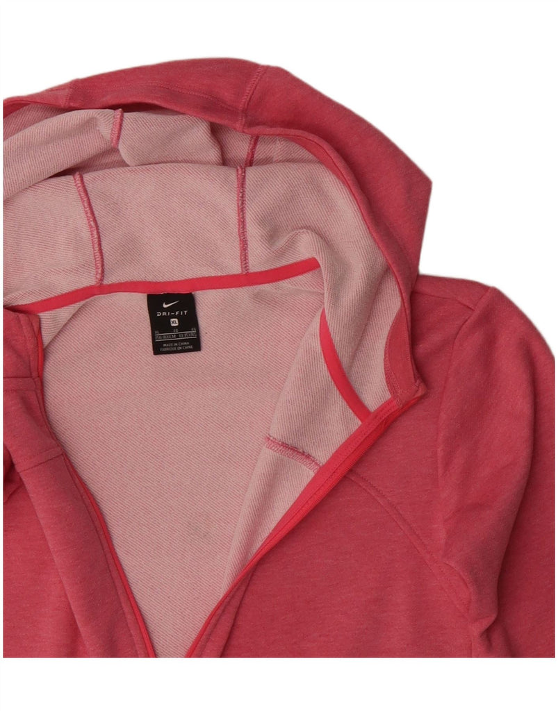 NIKE Girls Dri Fit Zip Hoodie Sweater 13-14 Years XL Pink Colourblock