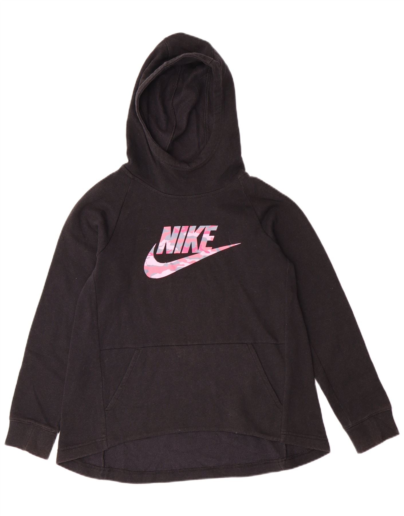 NIKE Grafisk hættetrøje til piger 10-11 år Medium sort bomuld