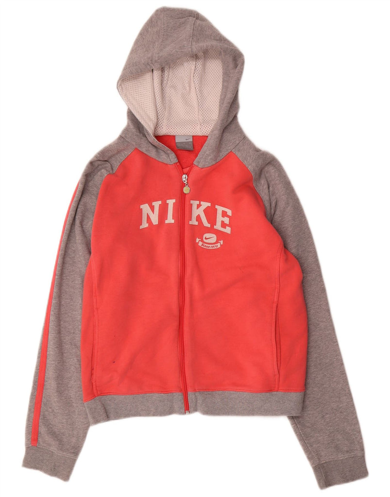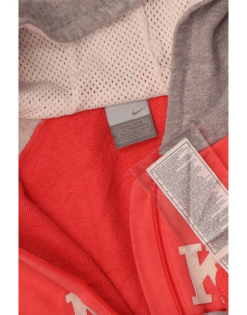 NIKE Girls Graphic Zip Hoodie Sweater 15-16 Years XL Red Colourblock