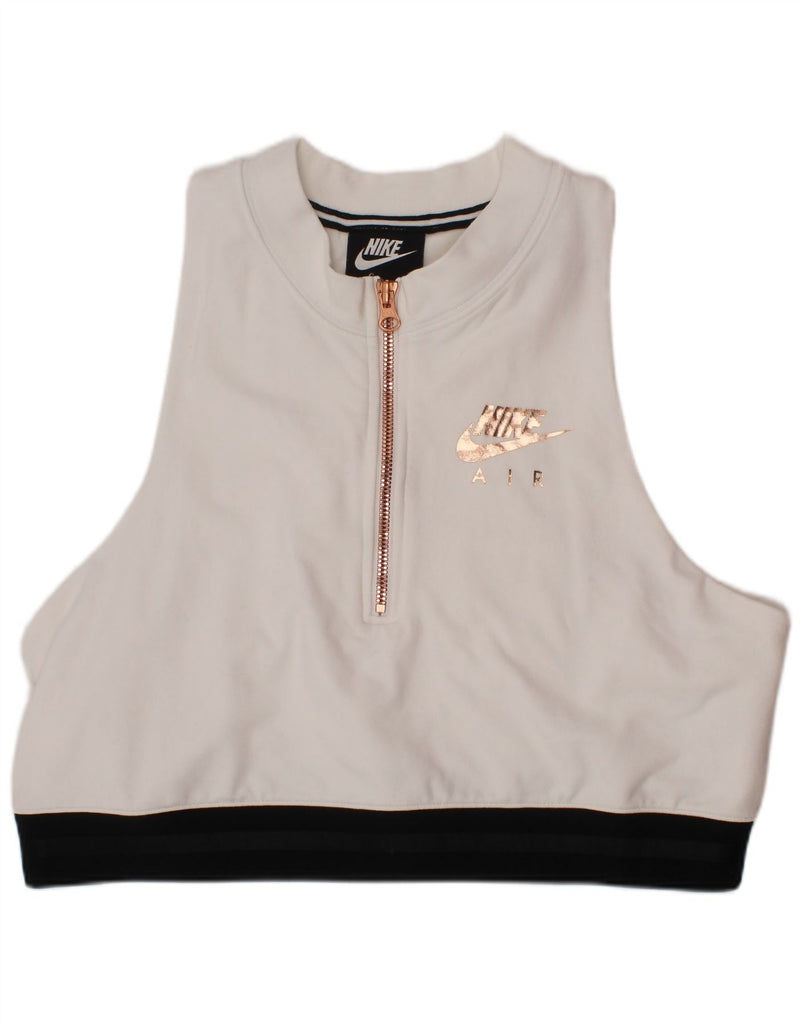 NIKE Sport BH-top med lynlås til piger 12-13 år Stor hvid farveblok