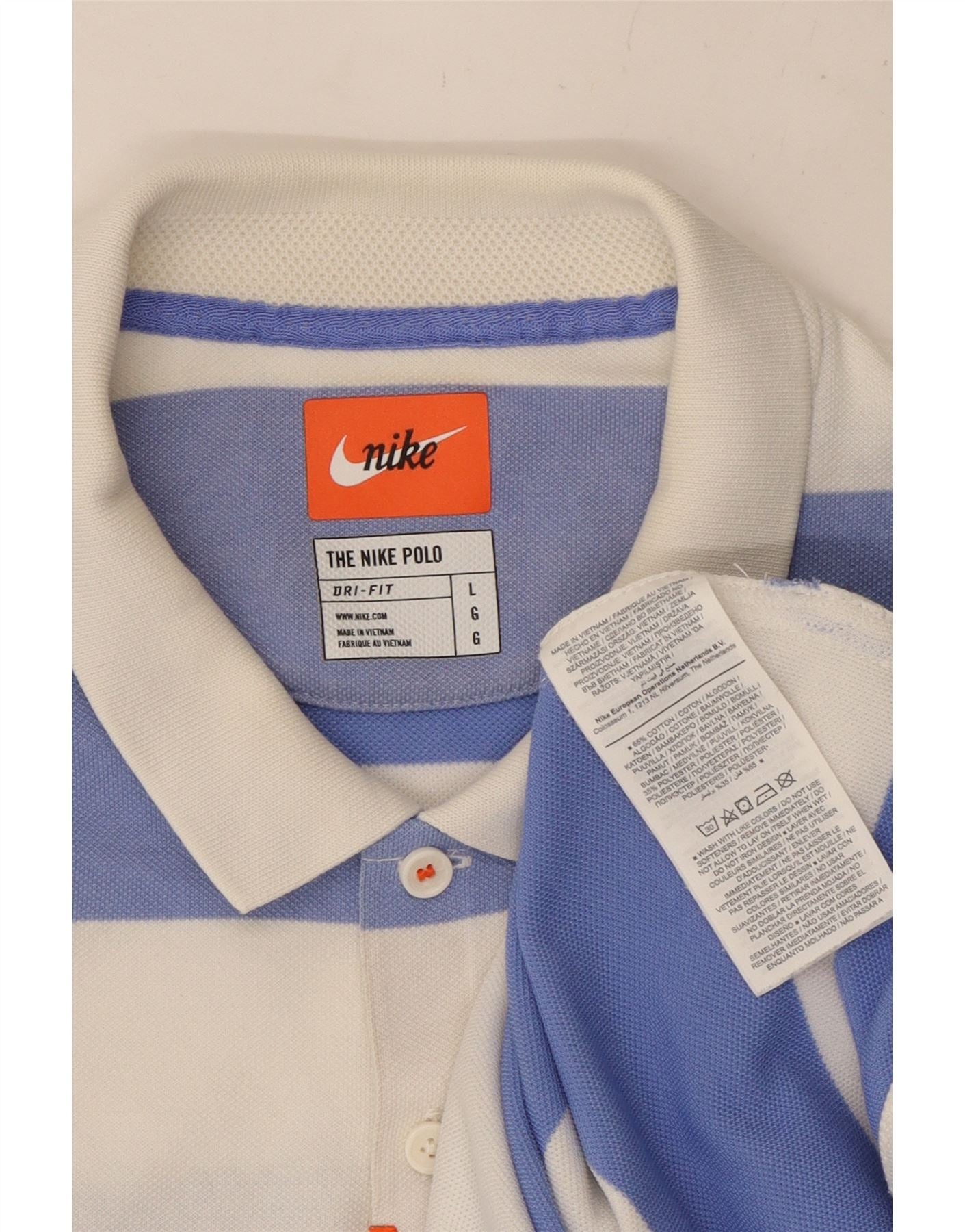 NIKE Herre Dri Fit Rugby Polo Shirt Stor hvid stribet bomuld