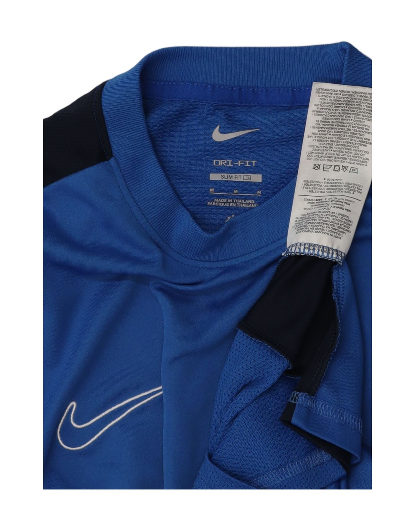 NIKE Mens Dri Fit Slim Fit T-Shirt Top Medium Blue Colourblock Polyester