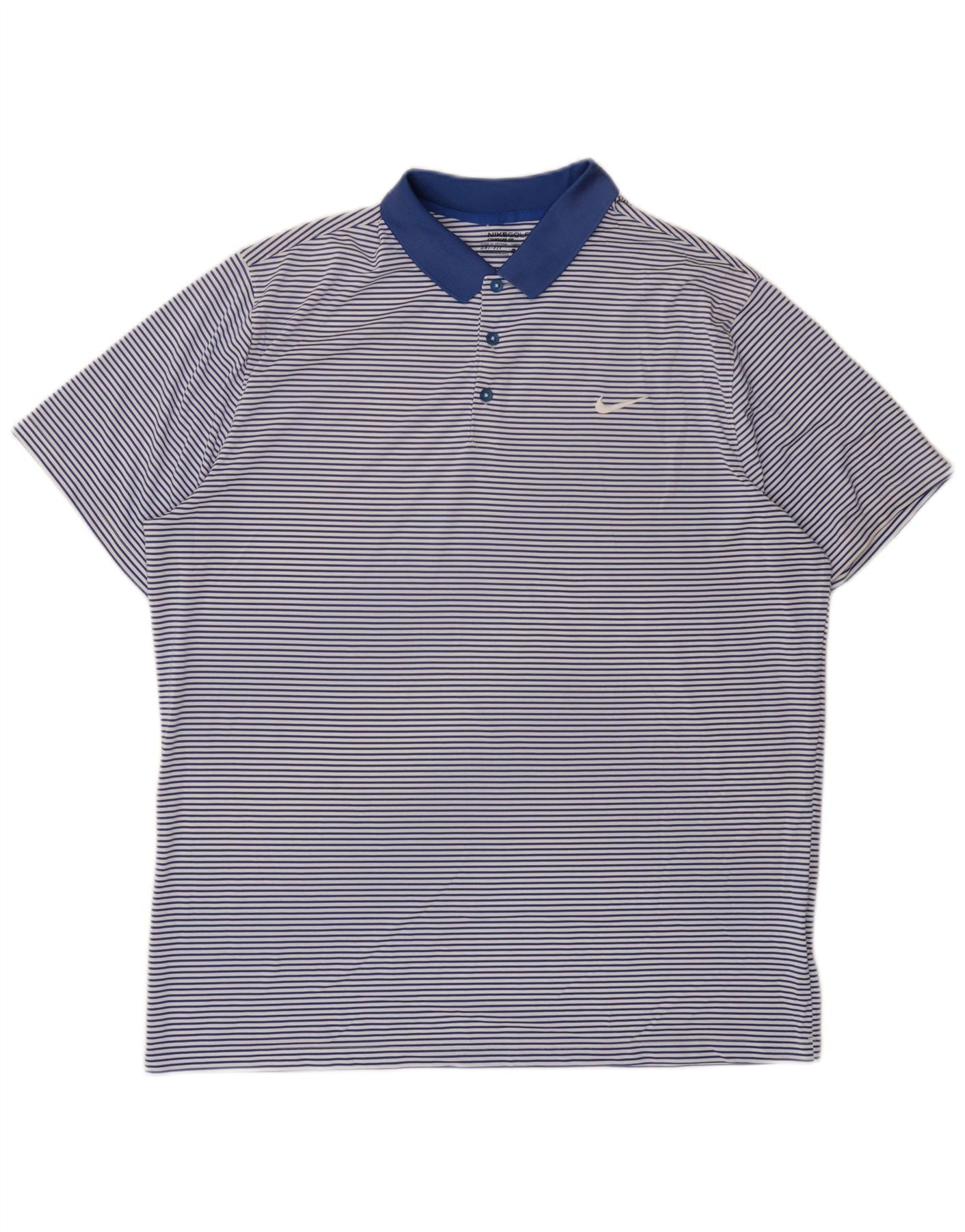 NIKE Mens Dri Fit Standard Fit Polo Shirt XL Blue Pinstripe Polyester