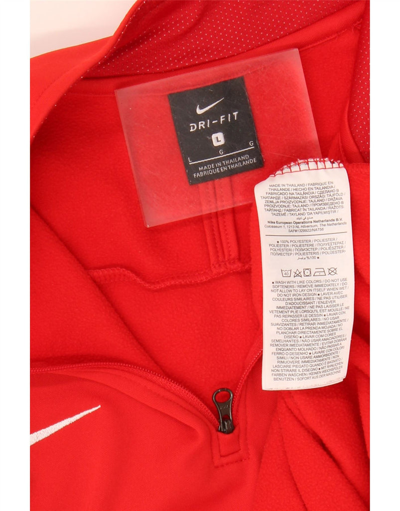 NIKE Mens Dri Fit Zip Neck Pullover Tracksuit Top Large Red Polyester