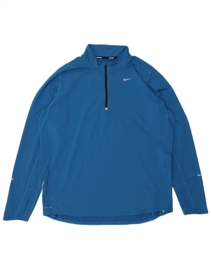 NIKE Herre Dri Fit Pullover med lynlås-hals Træningsdragt Top XL Blå Polyester