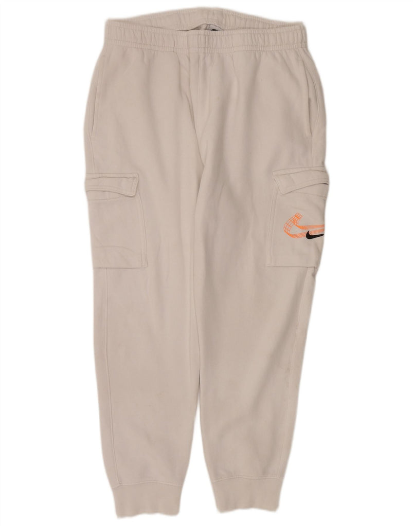 NIKE Mens Graphic Cargo Tracksuit Trousers Joggers Large White Cotton
