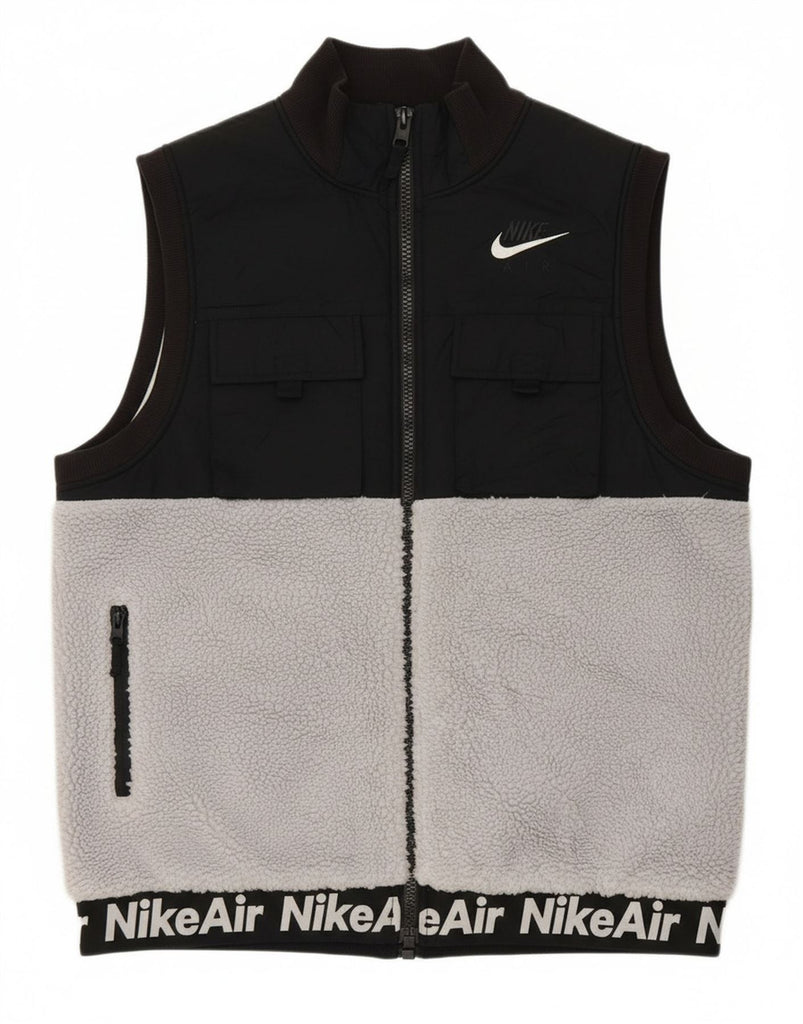 NIKE Mens Graphic Fleece Gilet UK 38 Medium Grey Colourblock Polyester