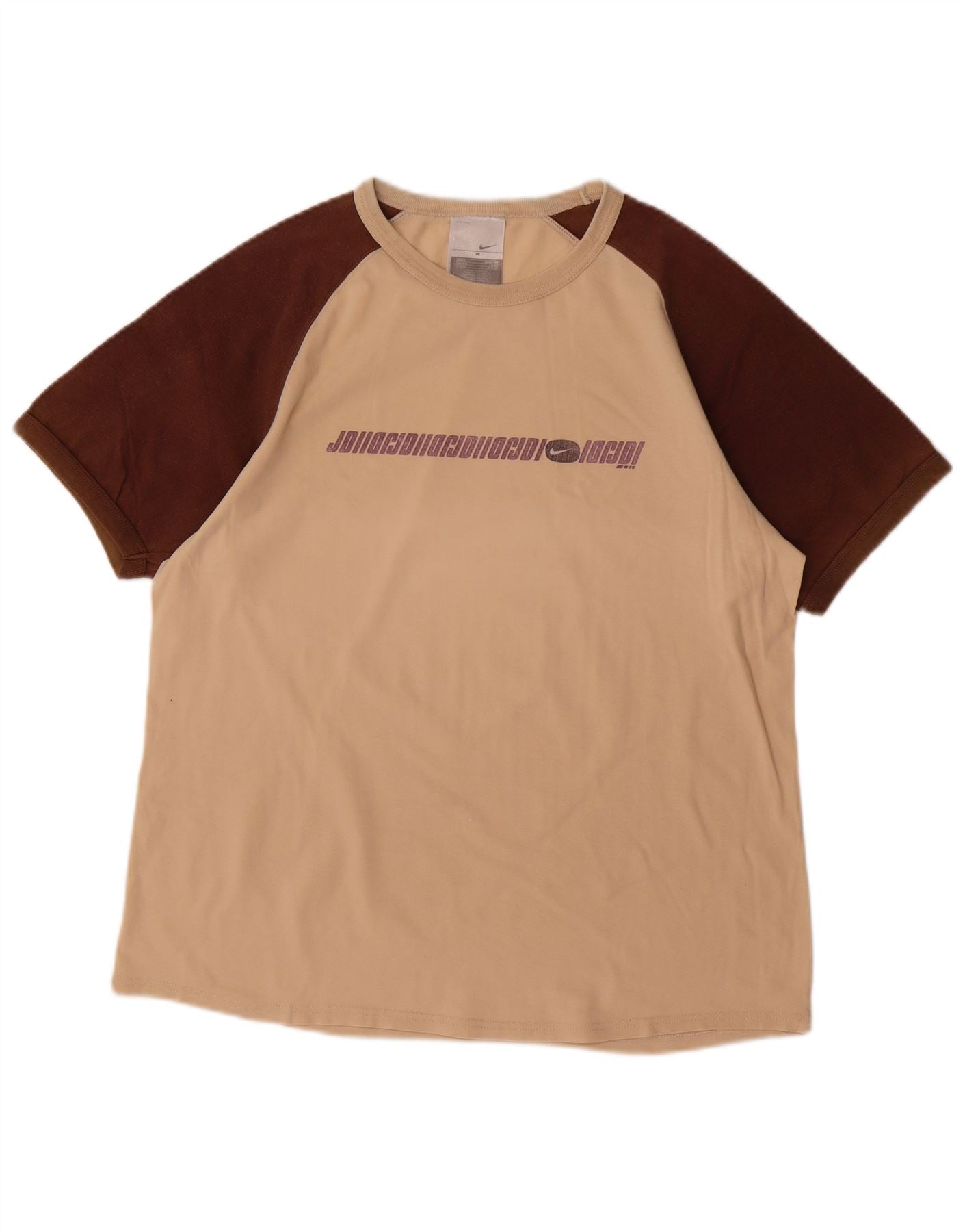 NIKE grafisk T-shirt top til mænd UK 39/41 Medium Beige Colourblock Bomuld