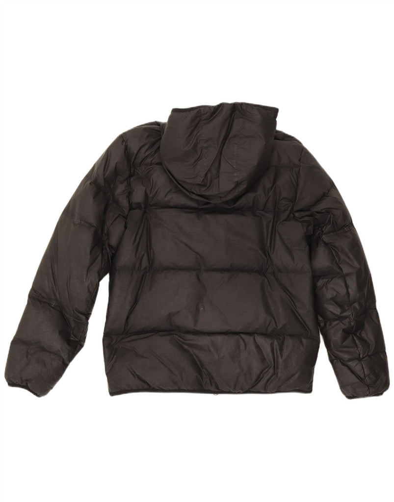 - AI Description: This Nike mens padded jacket features a black padded design with a down fill, offering exceptional warmth. It has a high neck and a full zip closure for secure fastening. The long sleeves and regular fit ensure comfortable wear. A practical hood provides extra protection. Functional pockets add utility. A subtle logo accent completes the athletic style.