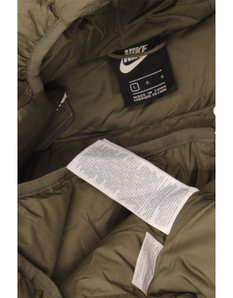 NIKE Mens Hooded Padded Jacket UK 40 Large Khaki Polyester