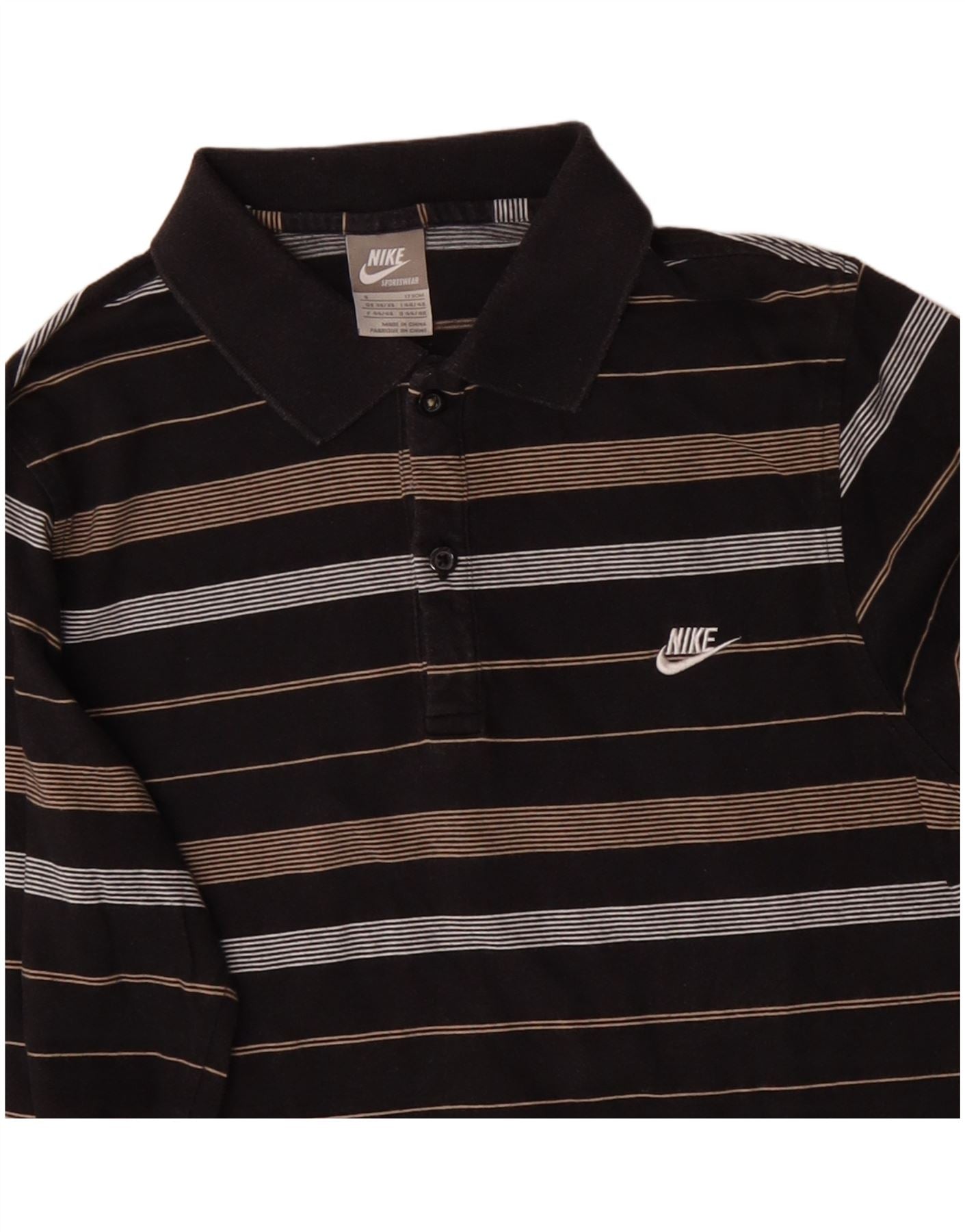 NIKE Langærmet poloshirt til mænd Lille sort stribet bomuld