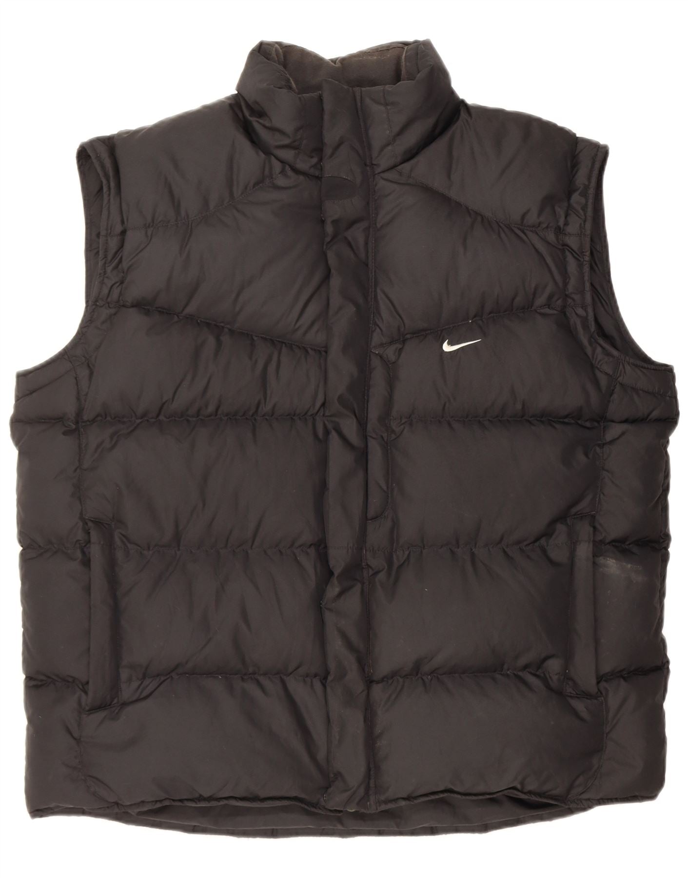 - AI Description: This Nike mens padded gilet is crafted from a lightweight woven fabric with a padded finish. It features a collared neckline and a sleeveless design. The regular fit ensures comfortable wear. A full zip closure provides practicality. Functional pockets add convenience. A subtle Nike logo accent completes the sports inspired style.