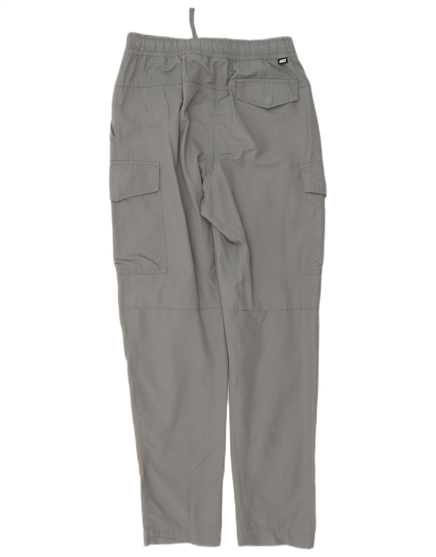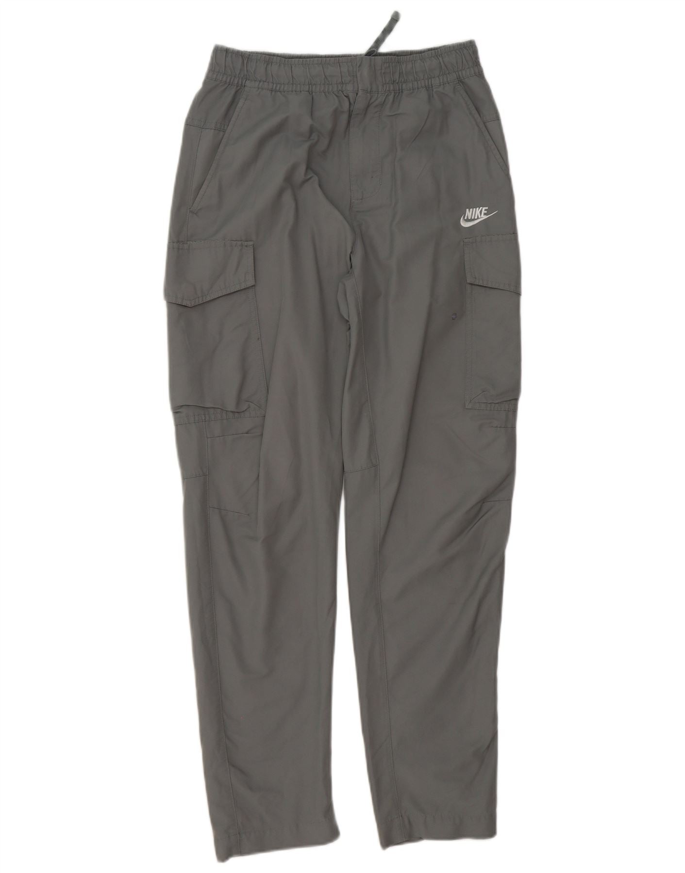 - AI Description: This Nike mens Cargo Trousers are crafted from durable grey polyester woven fabric. The pull on closure and elastic waist ensure a comfortable, adjustable fit. A regular fit with straight legs offers a classic silhouette. Multiple pockets provide practical storage, while a subtle logo accent adds signature branding. These trousers are ideal for sports or casual wear.