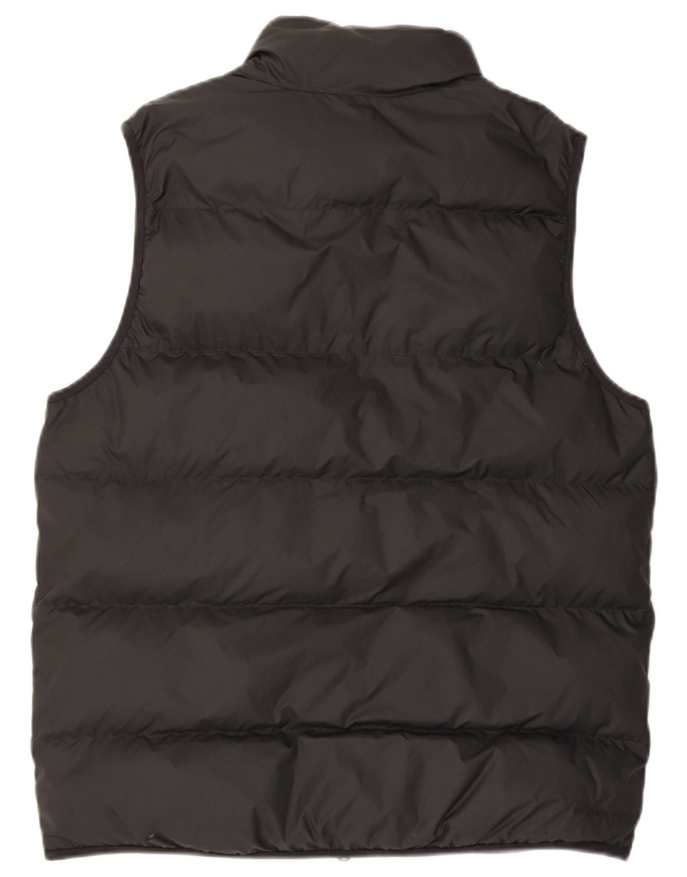 - AI Description: This Nike mens waistcoat is crafted from black down fabric, featuring a quilted design for warmth. It offers a regular fit with a collared neckline and a full zip closure. Sleeveless for ease of movement, it includes practical pockets and a windproof finish. A subtle logo accent completes the sports style.