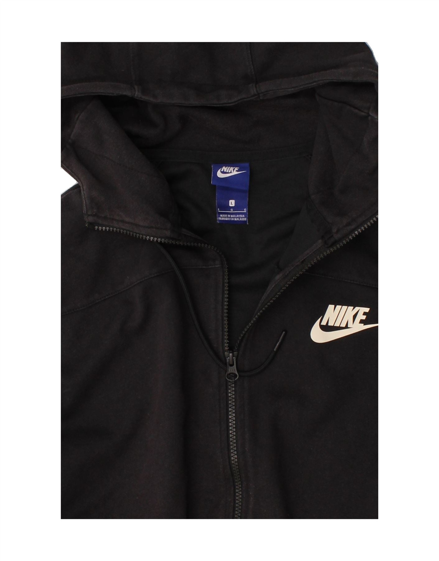 NIKE Mens Zip Hoodie Sweater Large Black Cotton