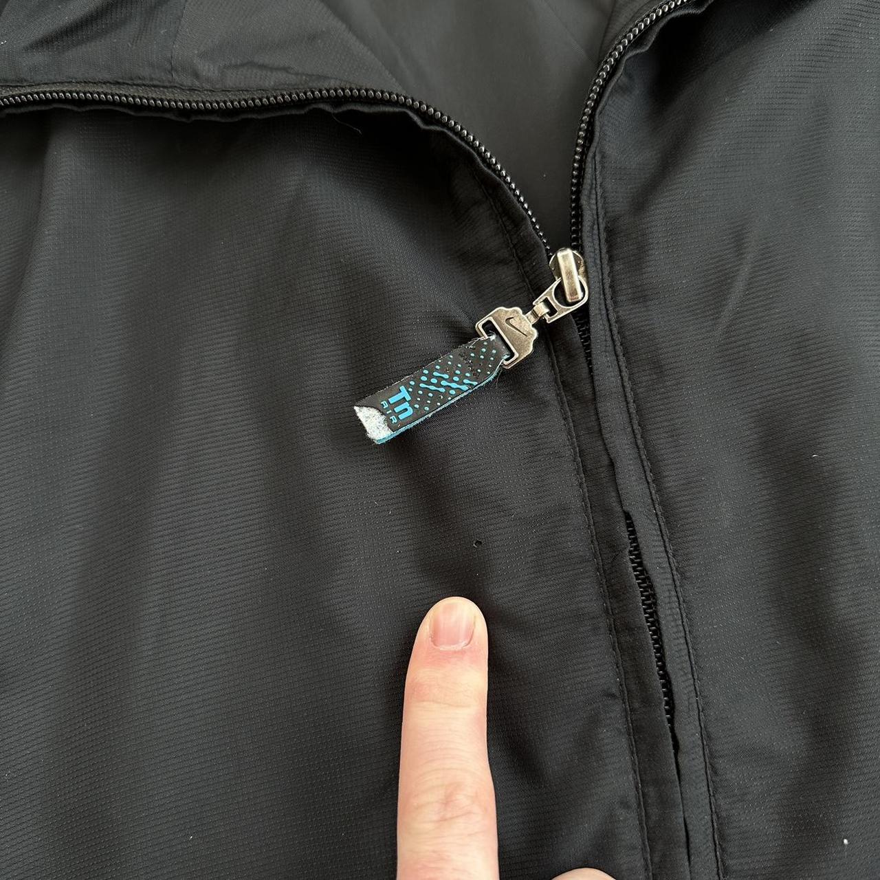 Vintage tidlig 2000'er Nike Tn træningsjakke med lynlås i sort med logo på brystet og print på ryggen